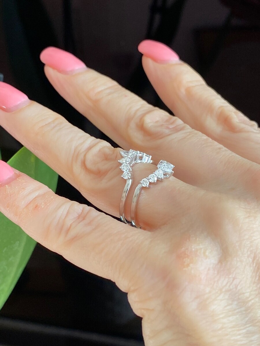 Rehaussez l' sparkle glorieux de votre bague de fiancailles avec cette magnifique bague de garde diademe en diamant de laboratoire en forme de poire et taille ronde de 0,75 carat en or blanc 14 carats.