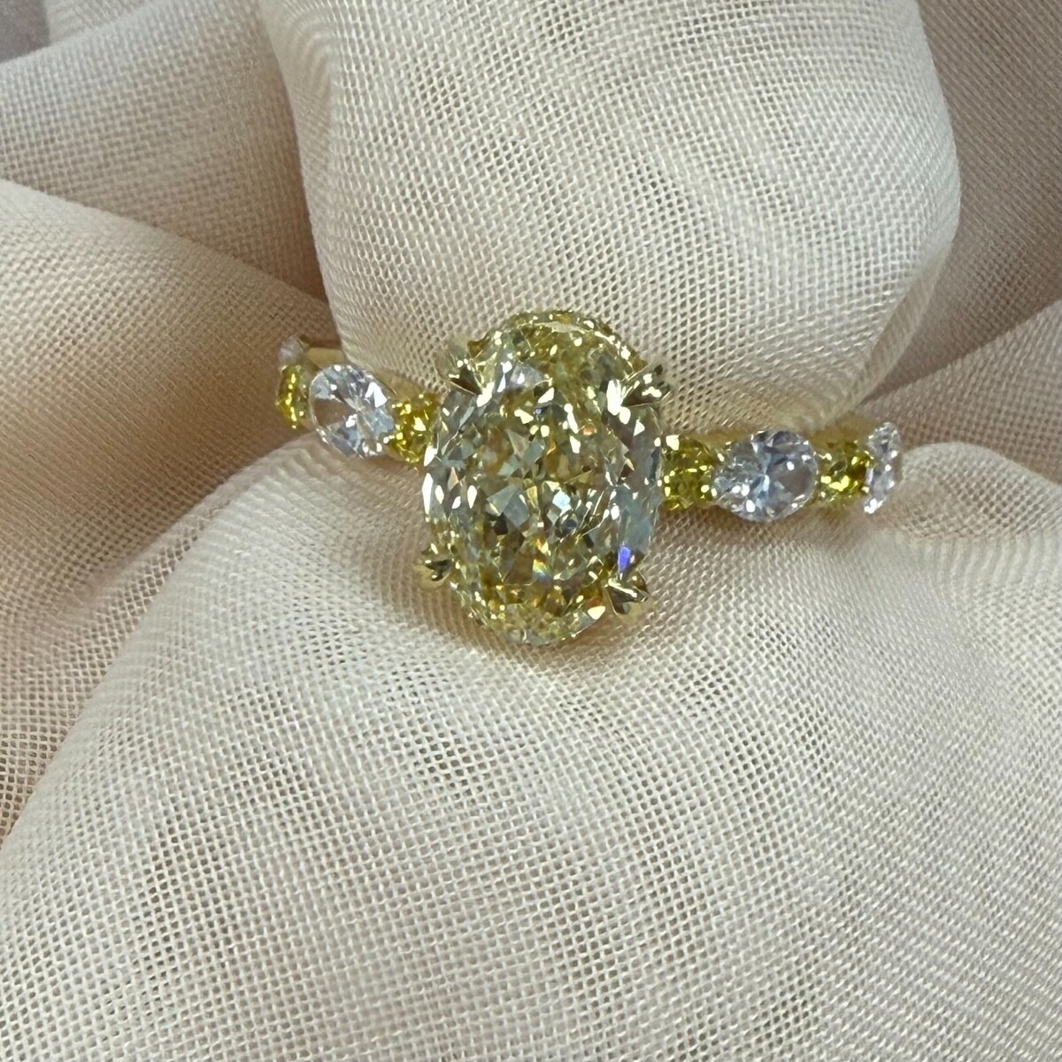 Igi 2.31 CT Jaune Ovale Brillant Coupe Labo Grown Bague Diamant 18k Or 3.51Ctw