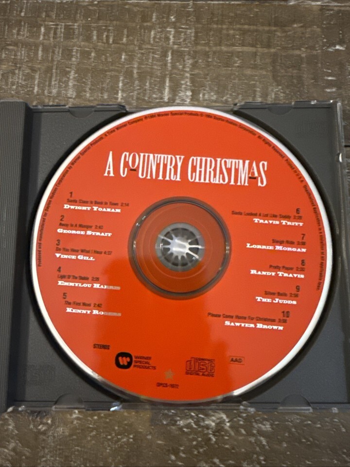 "A Country Christmas" CD features a collection of festive songs by various country music artists. The CD format allows for convenient playback of these holiday classics, making it a perfect addition to any country music lover's holiday music collection. With a mix of traditional and modern hits, this compilation album captures the essence of a country Christmas.