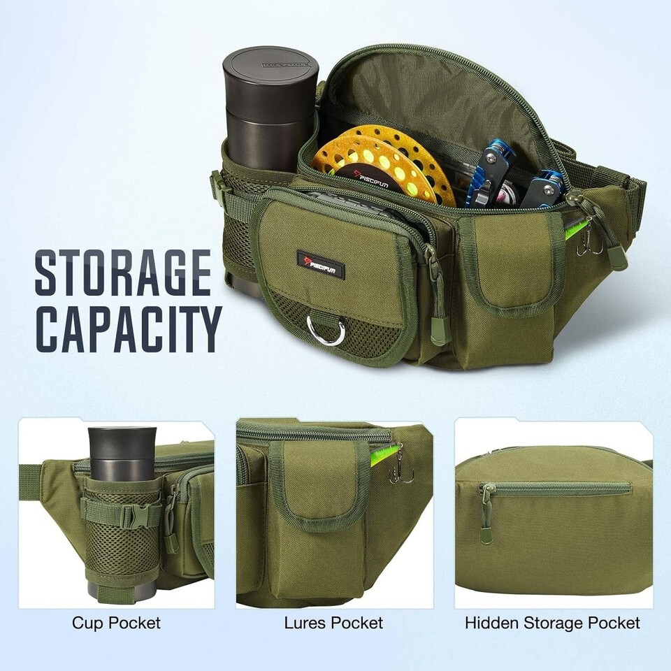 Piscifun Fishing Tackle Bag with Adjustable Waist Strap Fit Up to 56" Waist