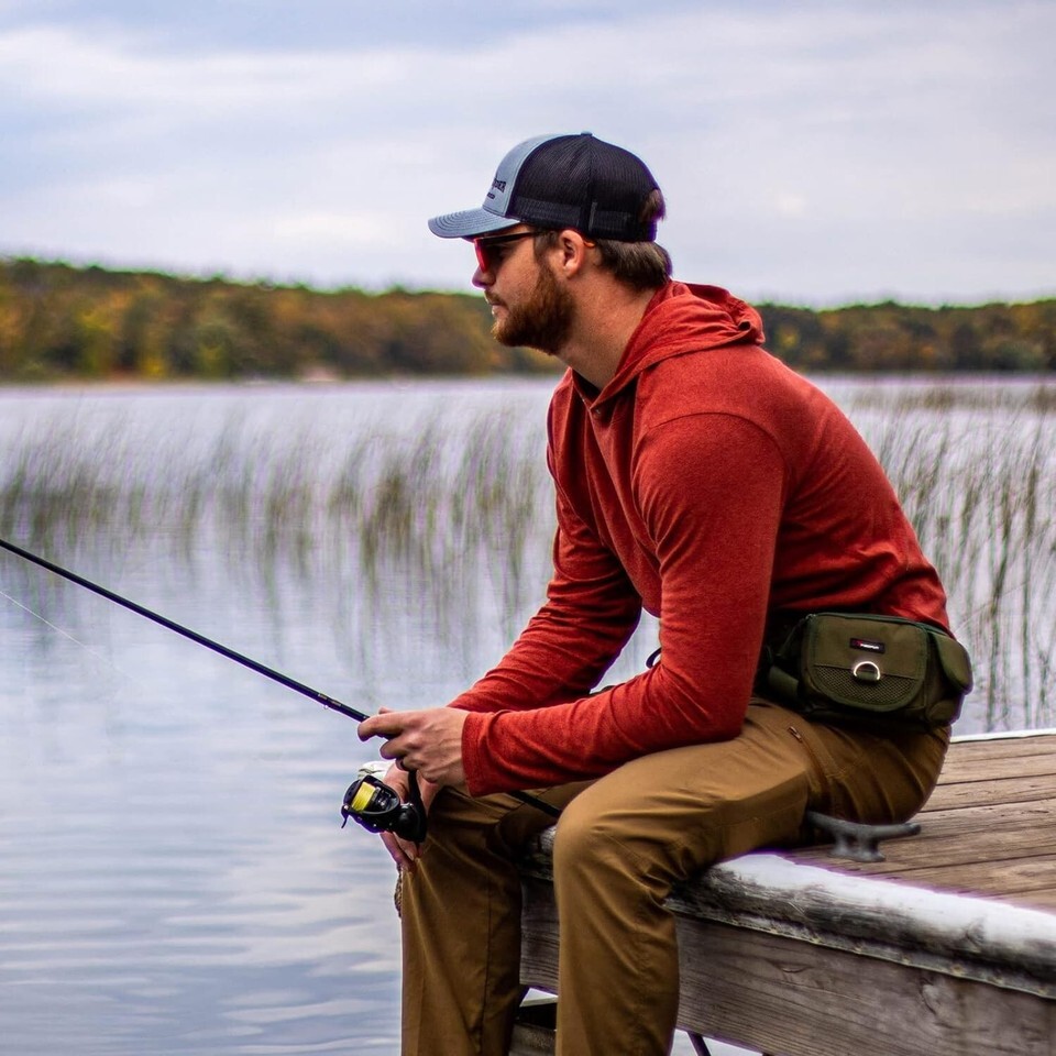 A Zippered Pocket on the Back Which Flushes to Your Body: This 6"x5.3" pocket enlarges the storage of the fishing waist bag. It is a great area to put your passport, cell phone (No missing any phone calls) and something you don't want others seeing easily