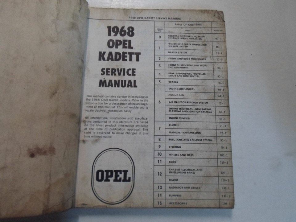 1968 OPEL KADETT SERVICE SHOP REPAIR MANUAL WATER DAMAGED WORN