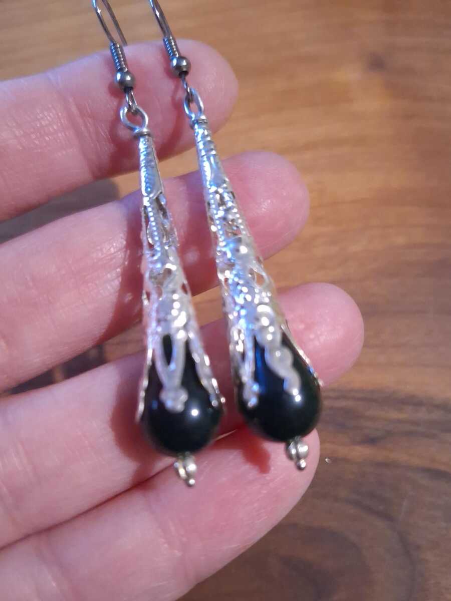 Silver earrings Cat eye earrings Victorian earrings Boho Earrings Bohemian Earrings acrylic teardrop beads earrings long earrings statement earrings antique style earrings