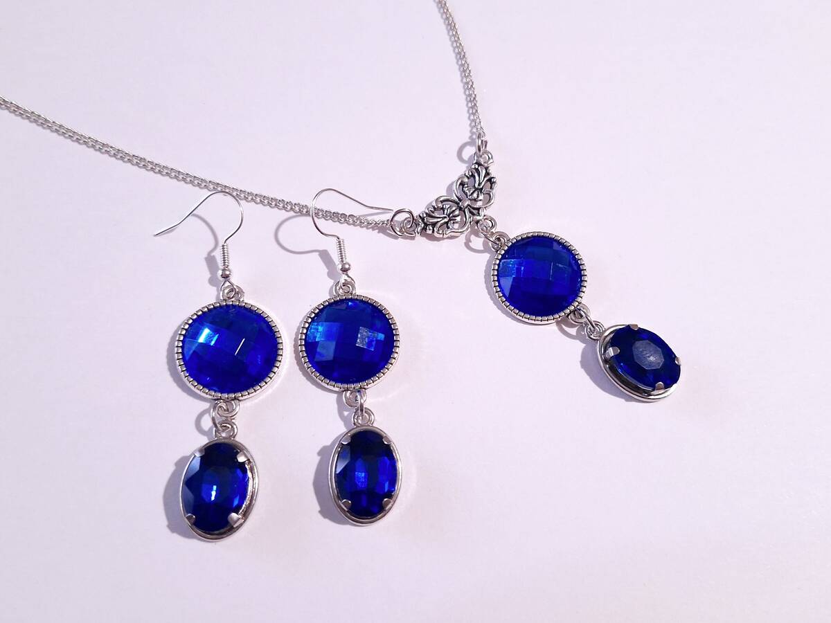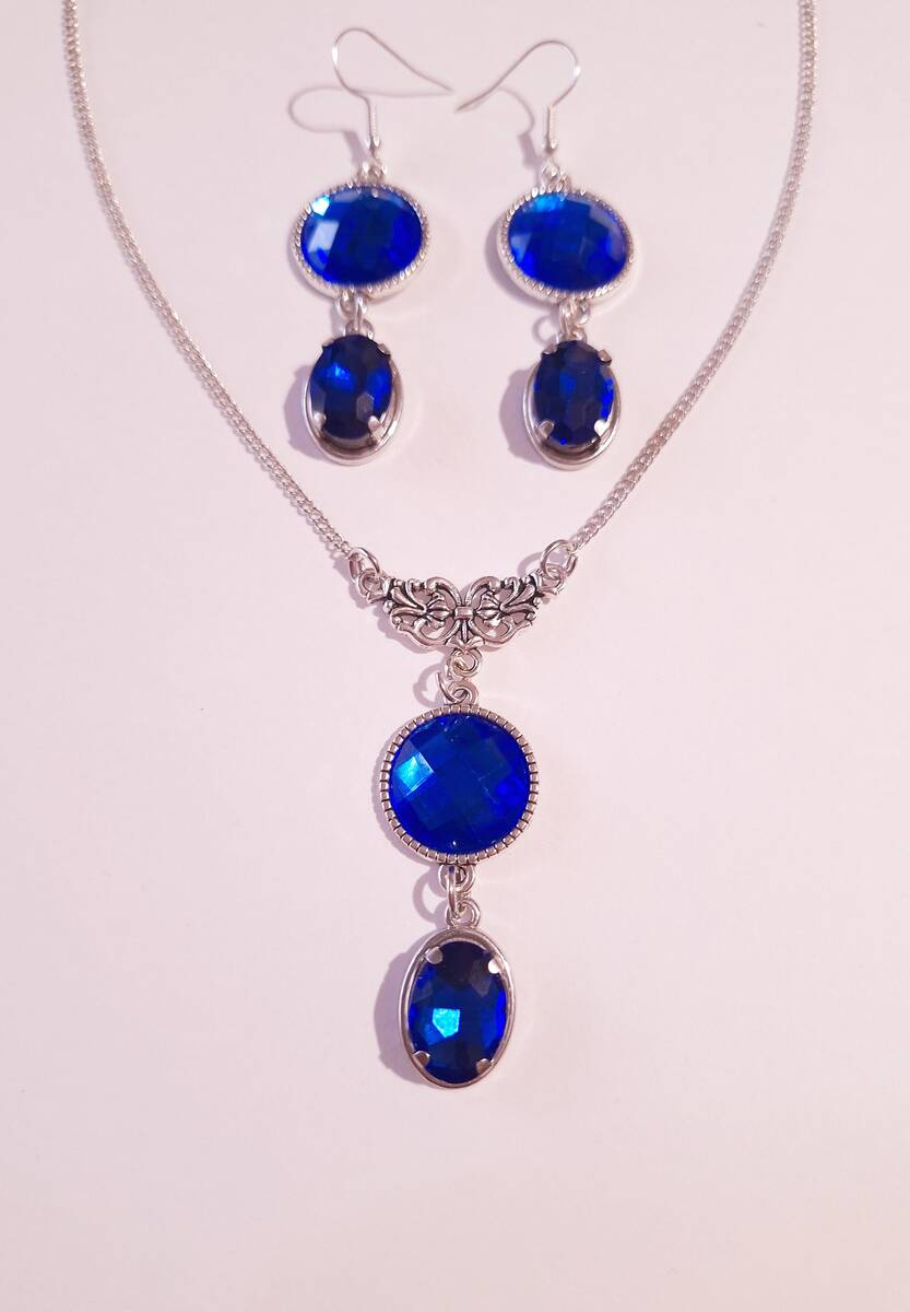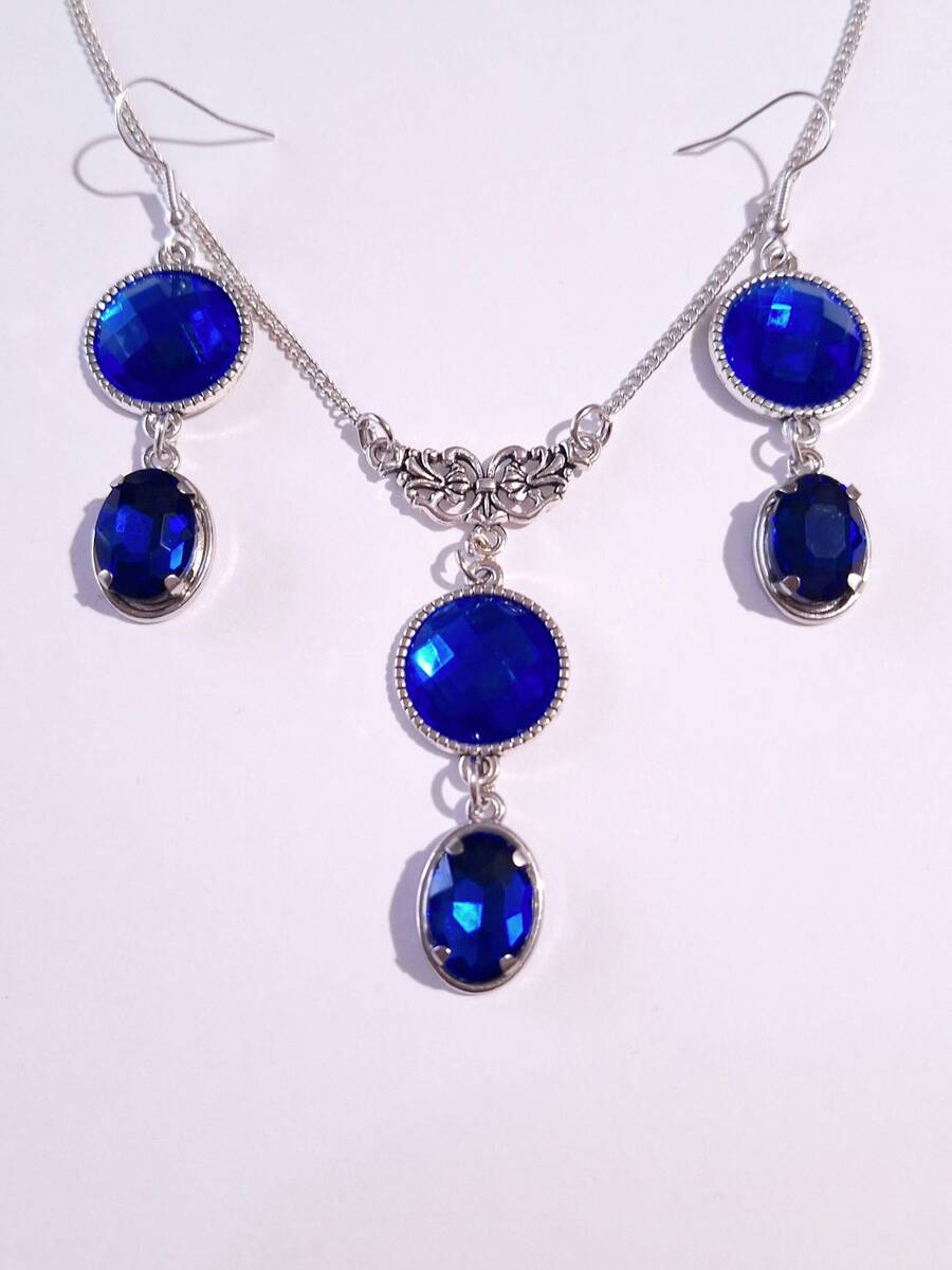 Victorian Royal blue Silver necklace jewelry set dark blue set crystal necklace
