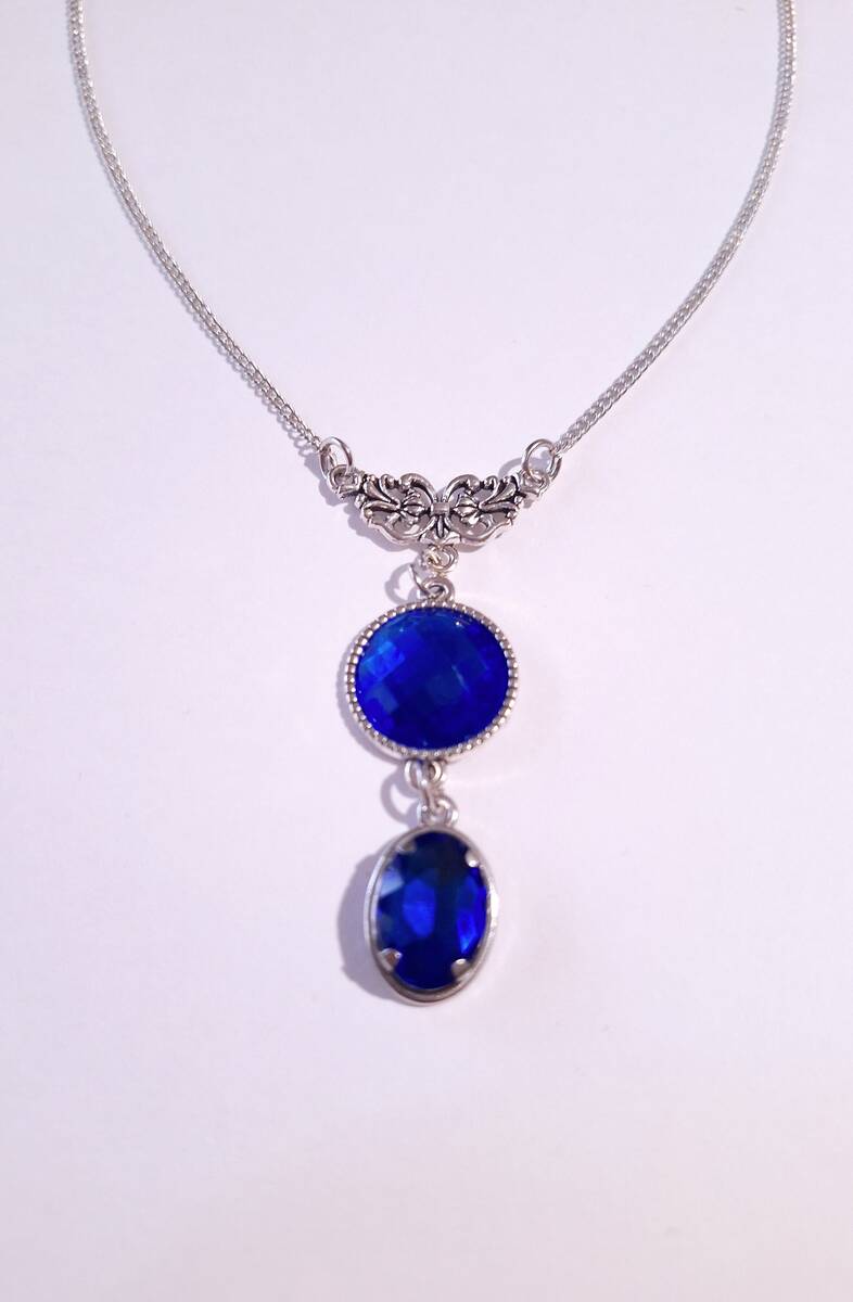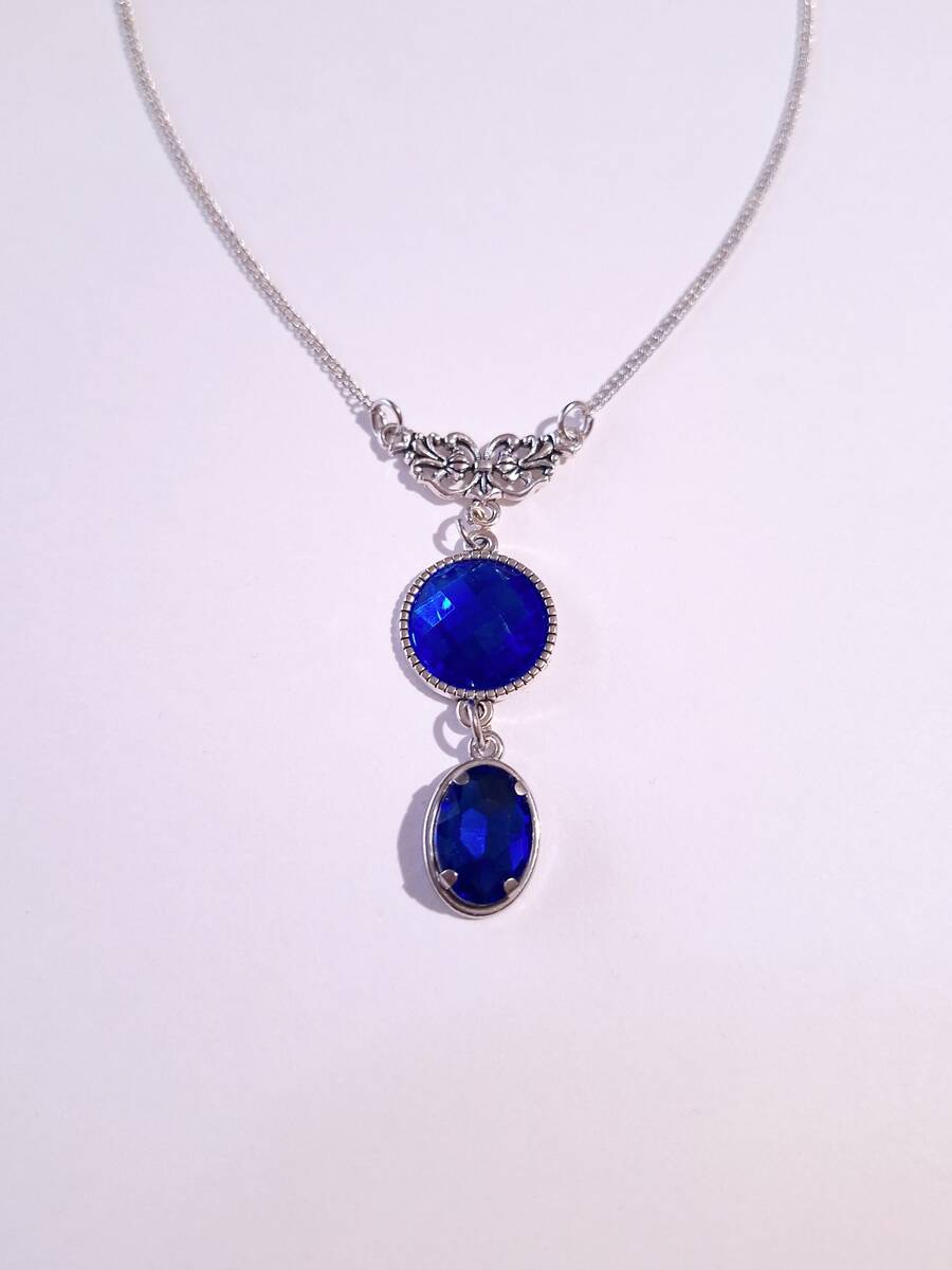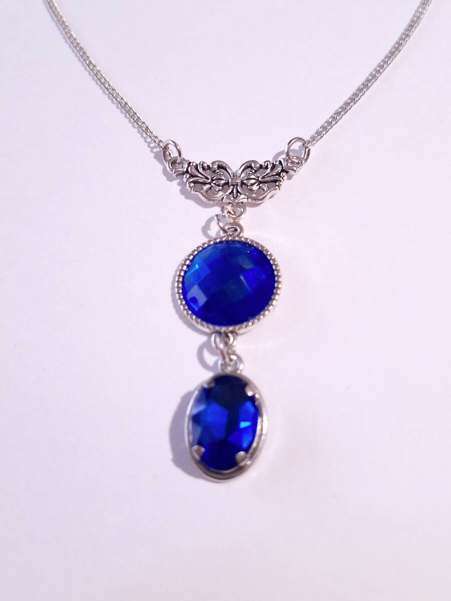 Victorian Royal blue Silver necklace jewelry set dark blue set crystal necklace