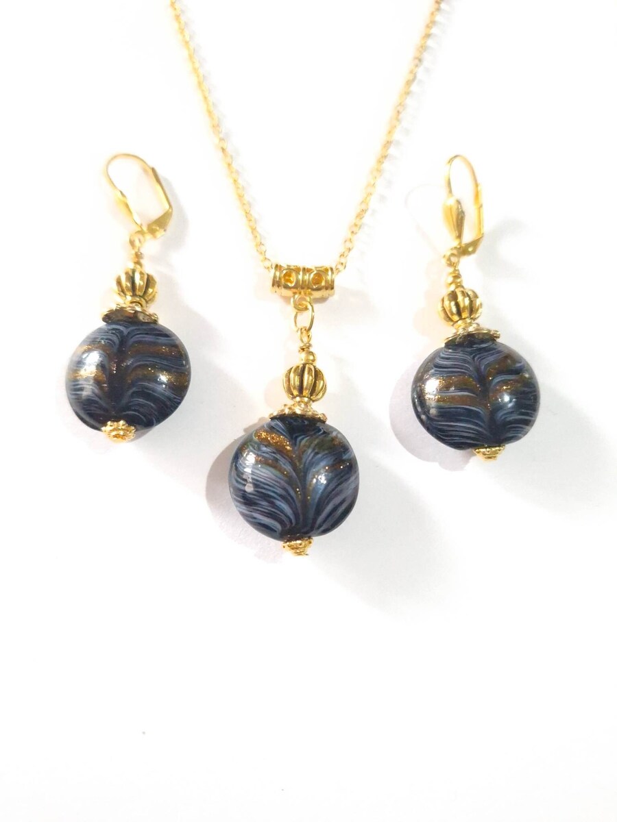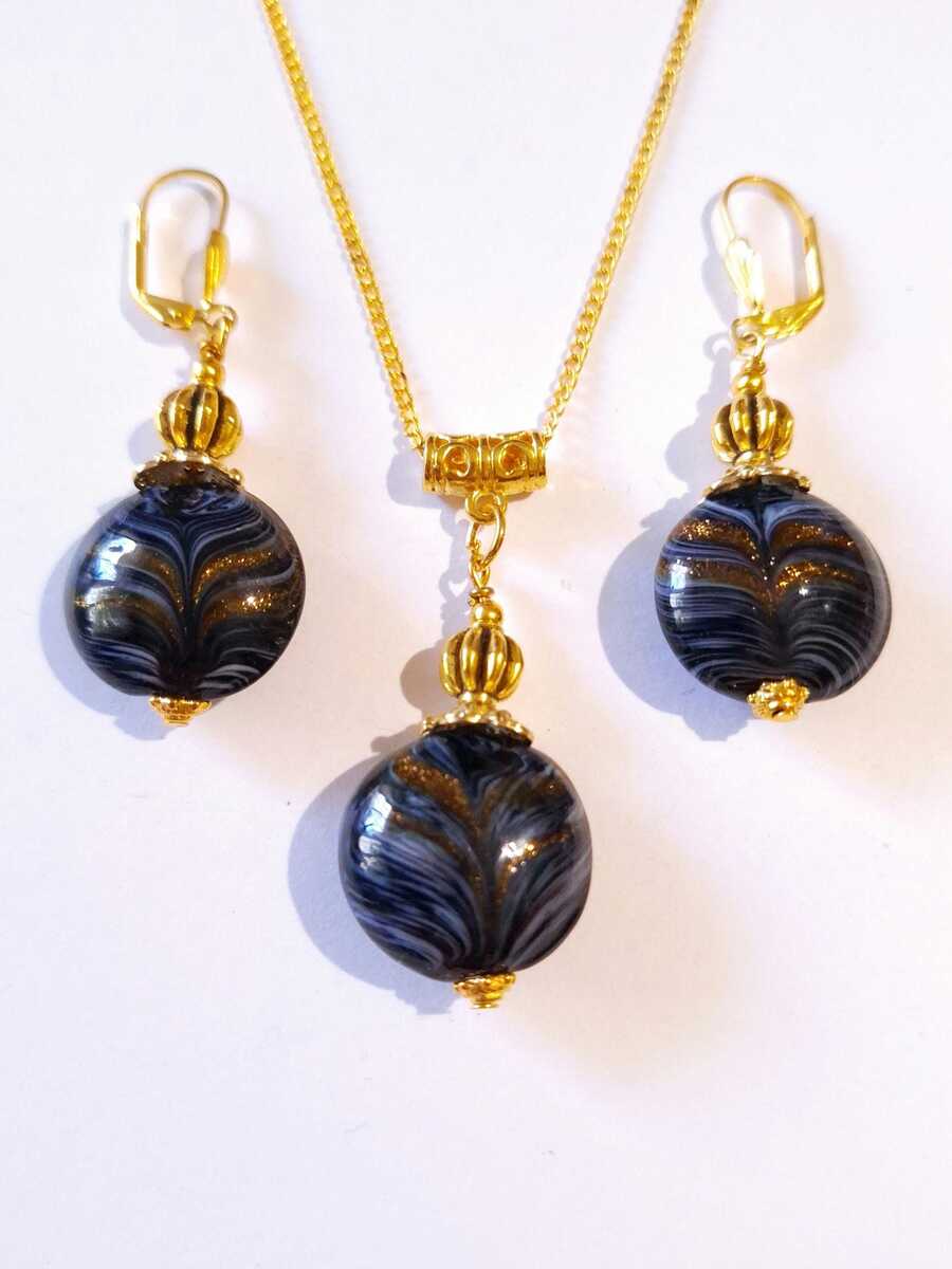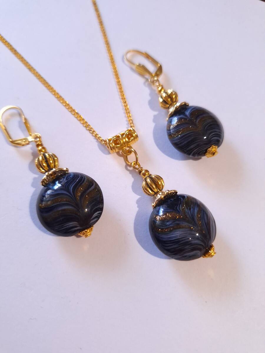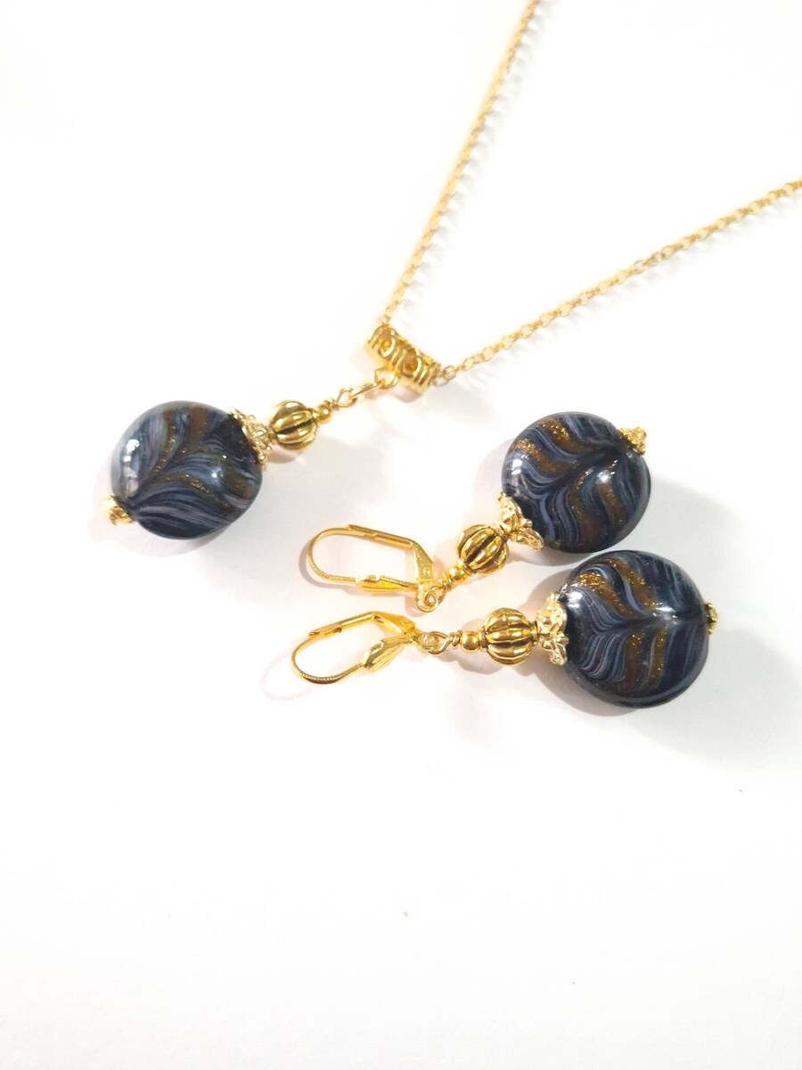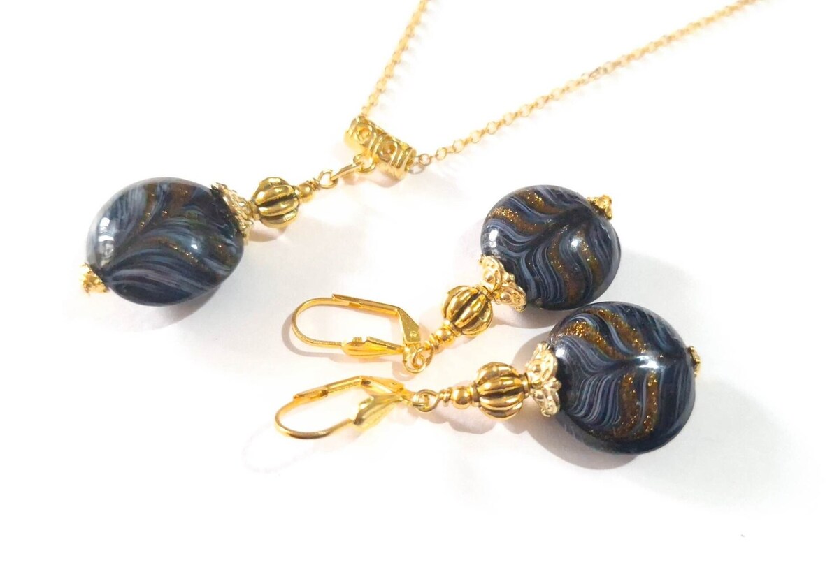 Murano black gold jewelry set Boho Murano handmade glass jewelry set earrings ne
