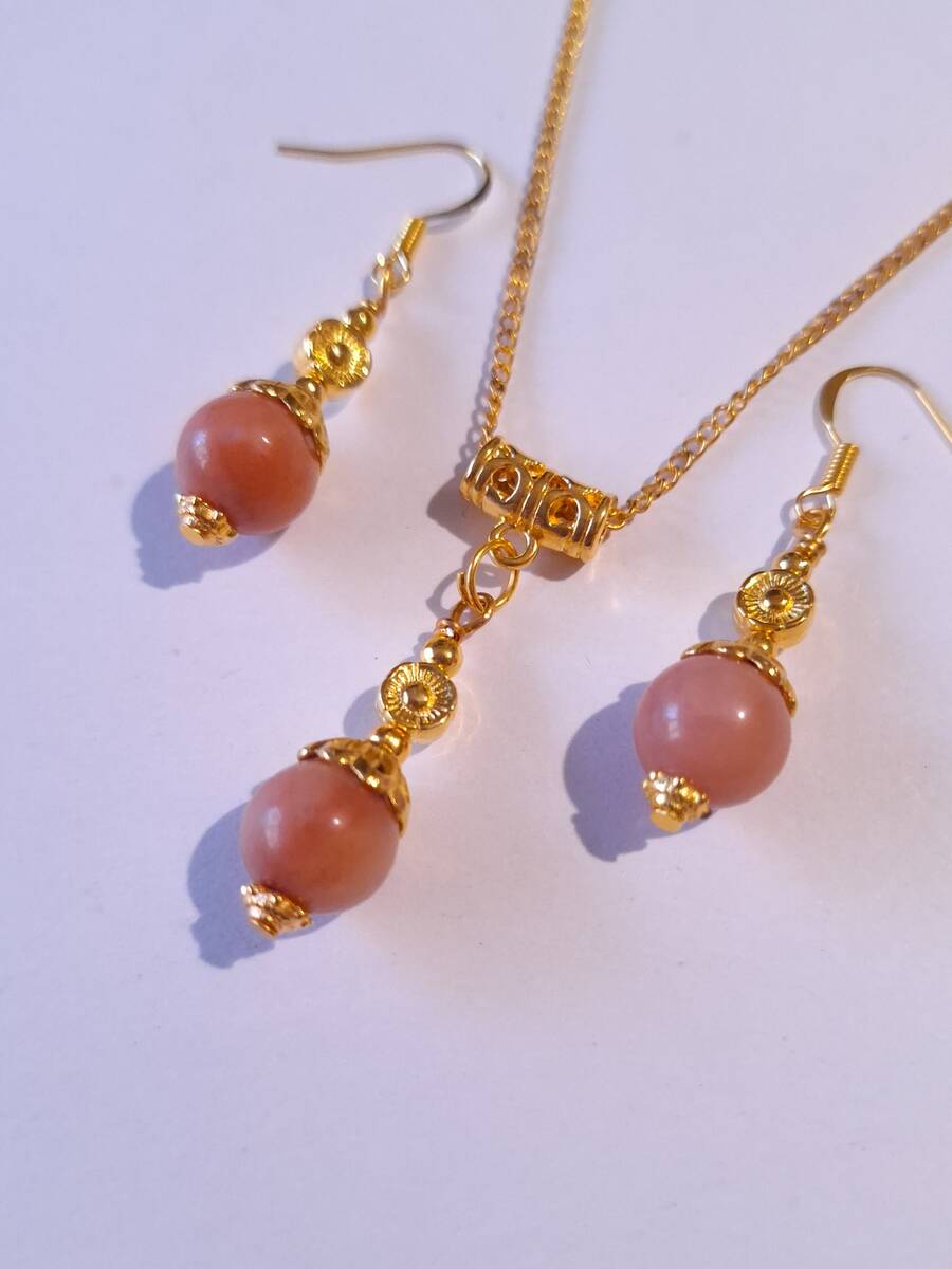 Gold Peach Opal necklace Victorian necklace earrings set Boho necklace Bohemian