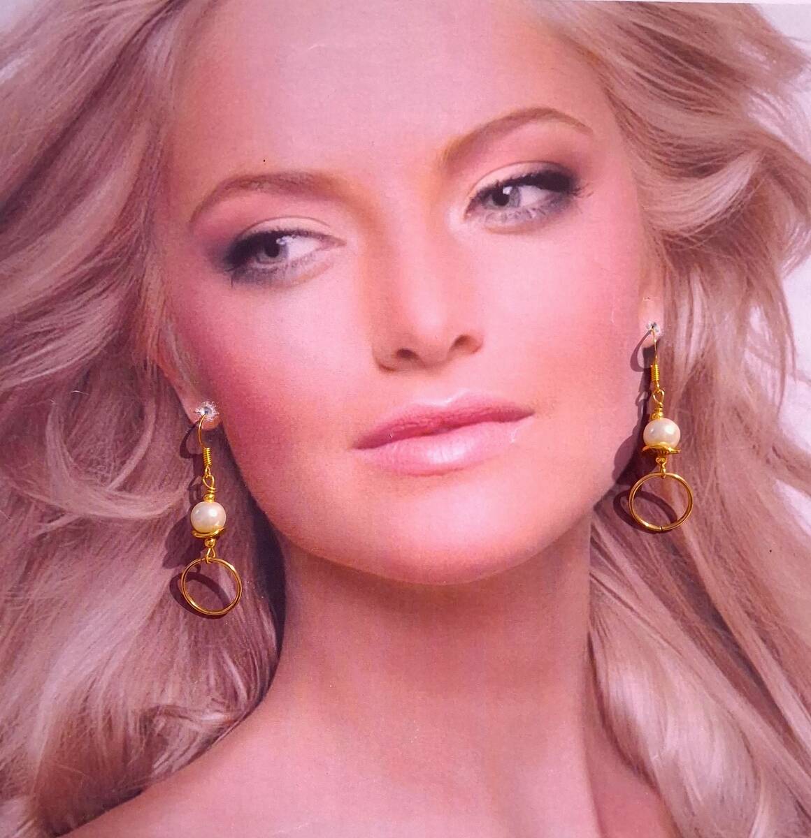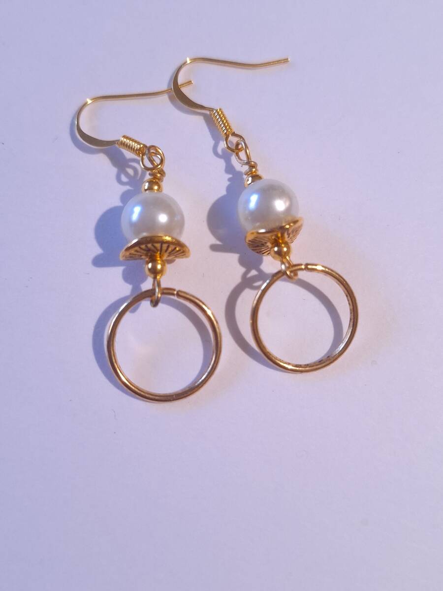 Material: gold tone ornaments beads and hoops , gold tone chain, crystal pearls beads-8 mm.
