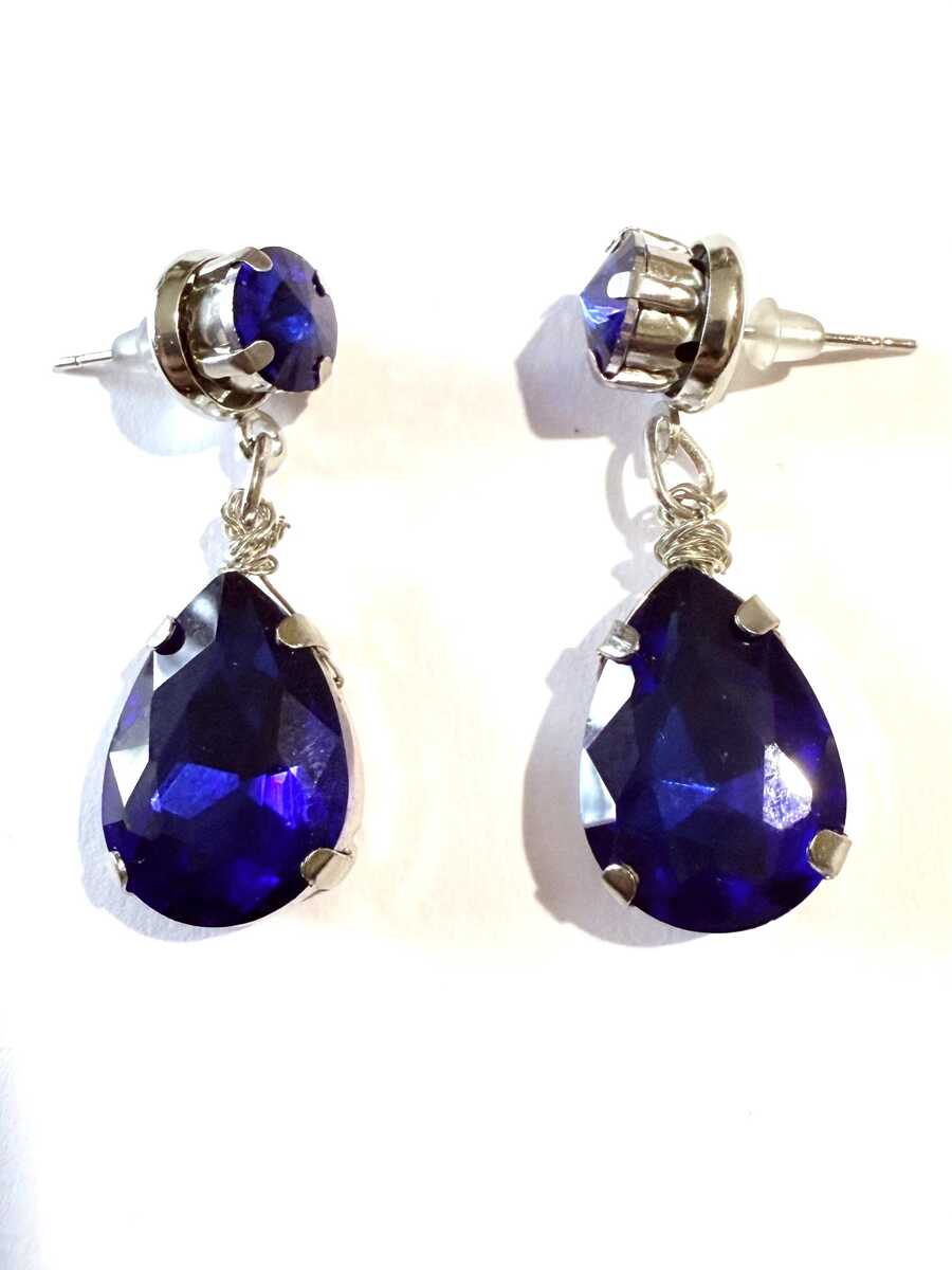 Victorian Royal blue Silver earrings dark blue necklace earrings Victorian earri