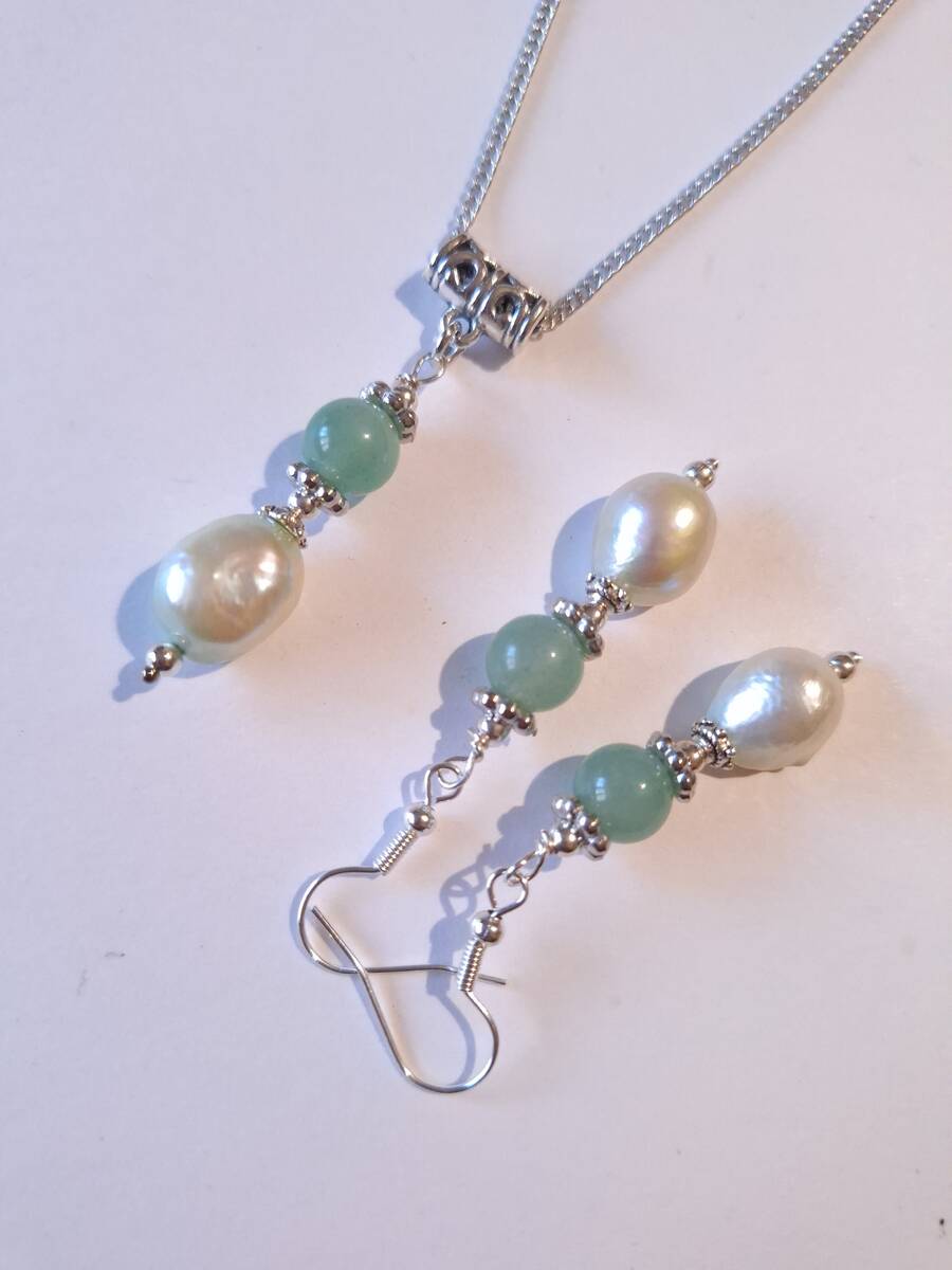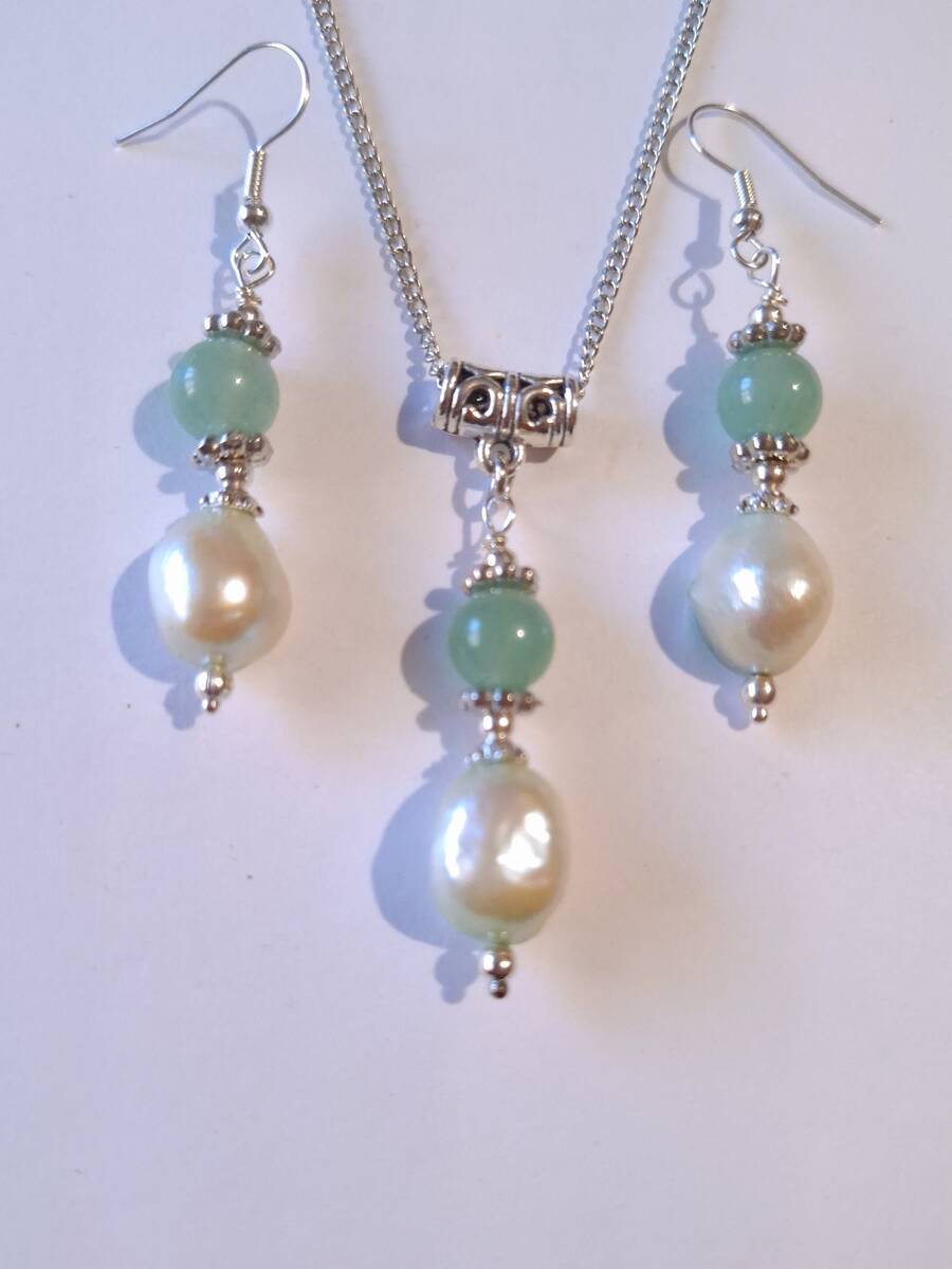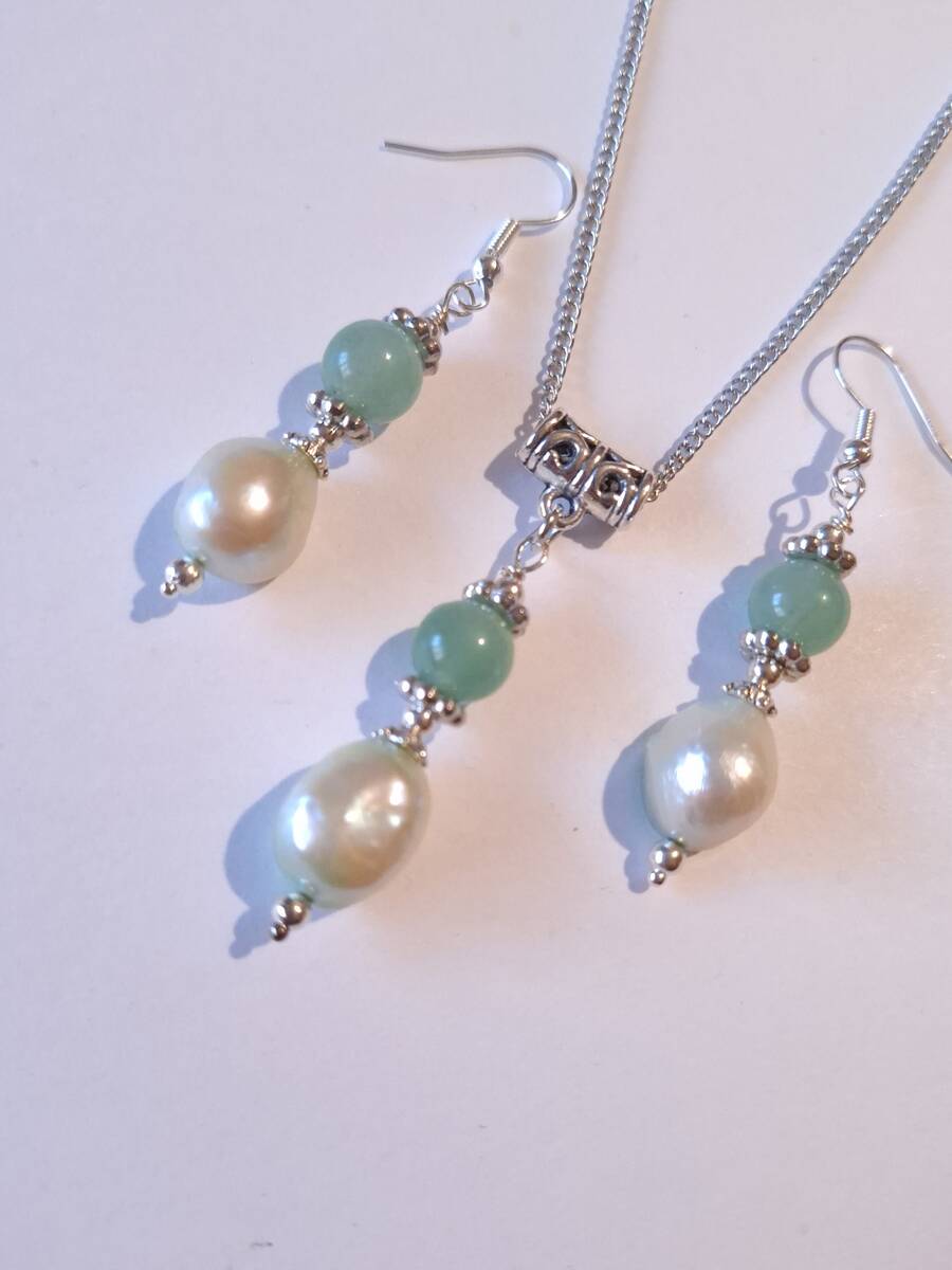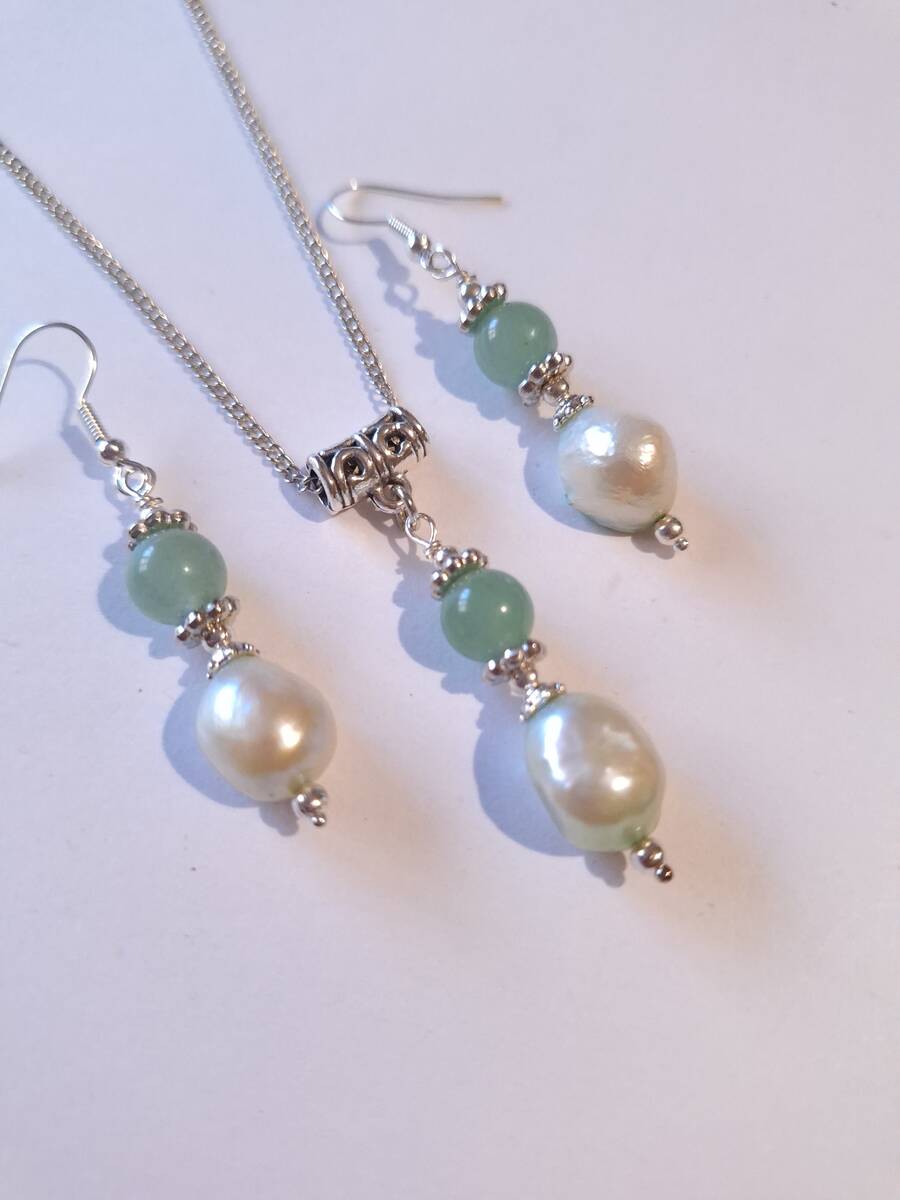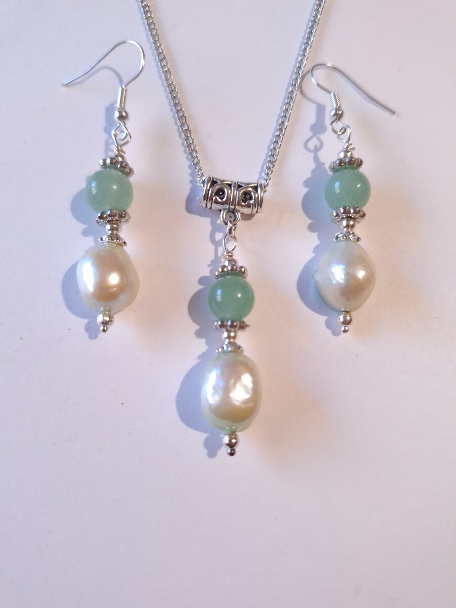 1. Jewelry set with baroque pearls and Nephrite necklace (Set 2 gems necklace)