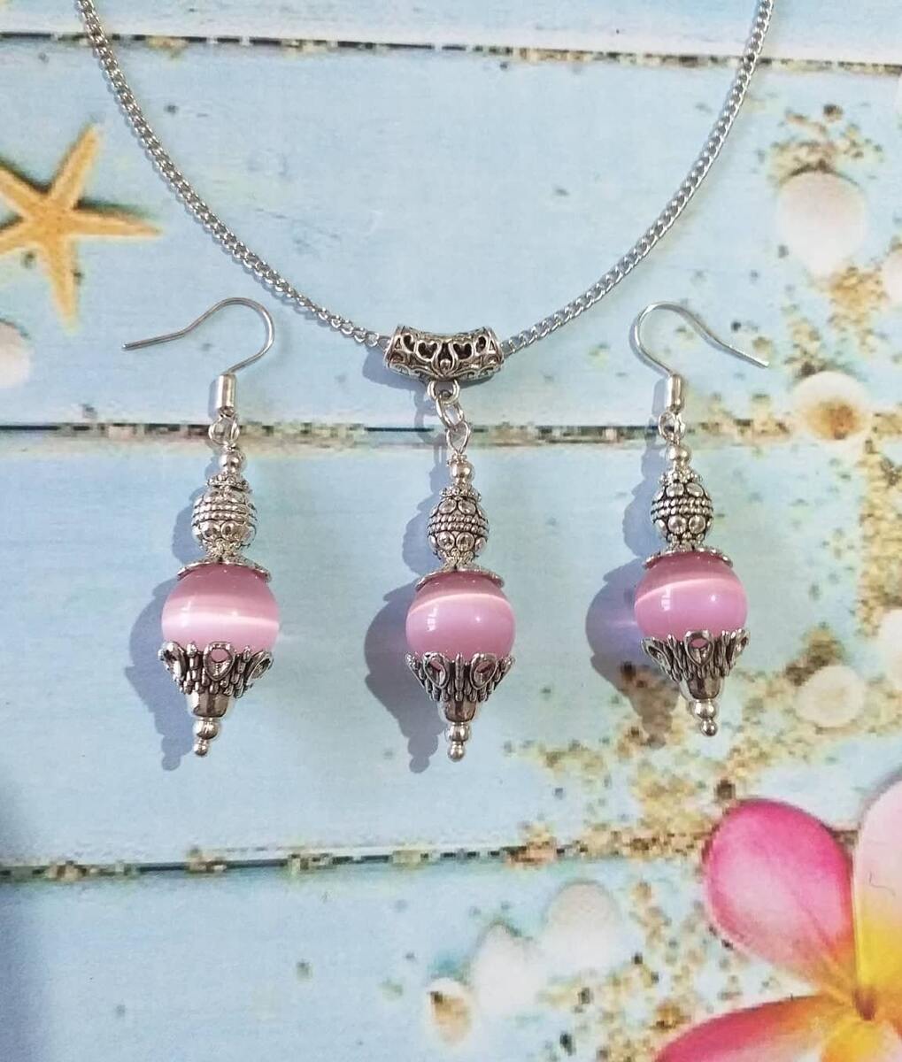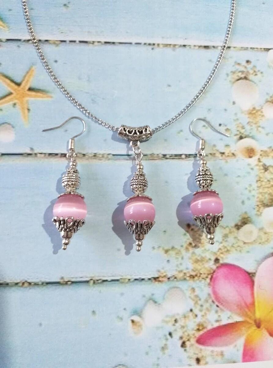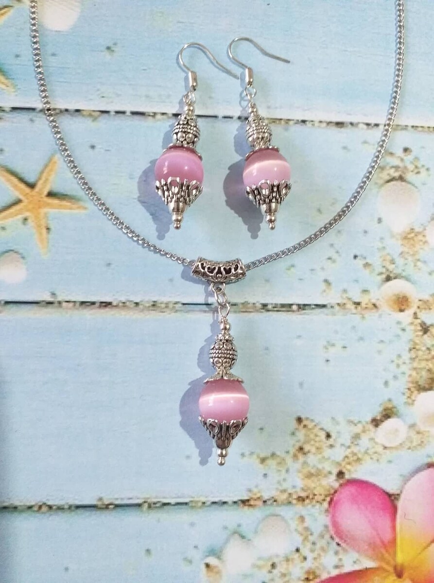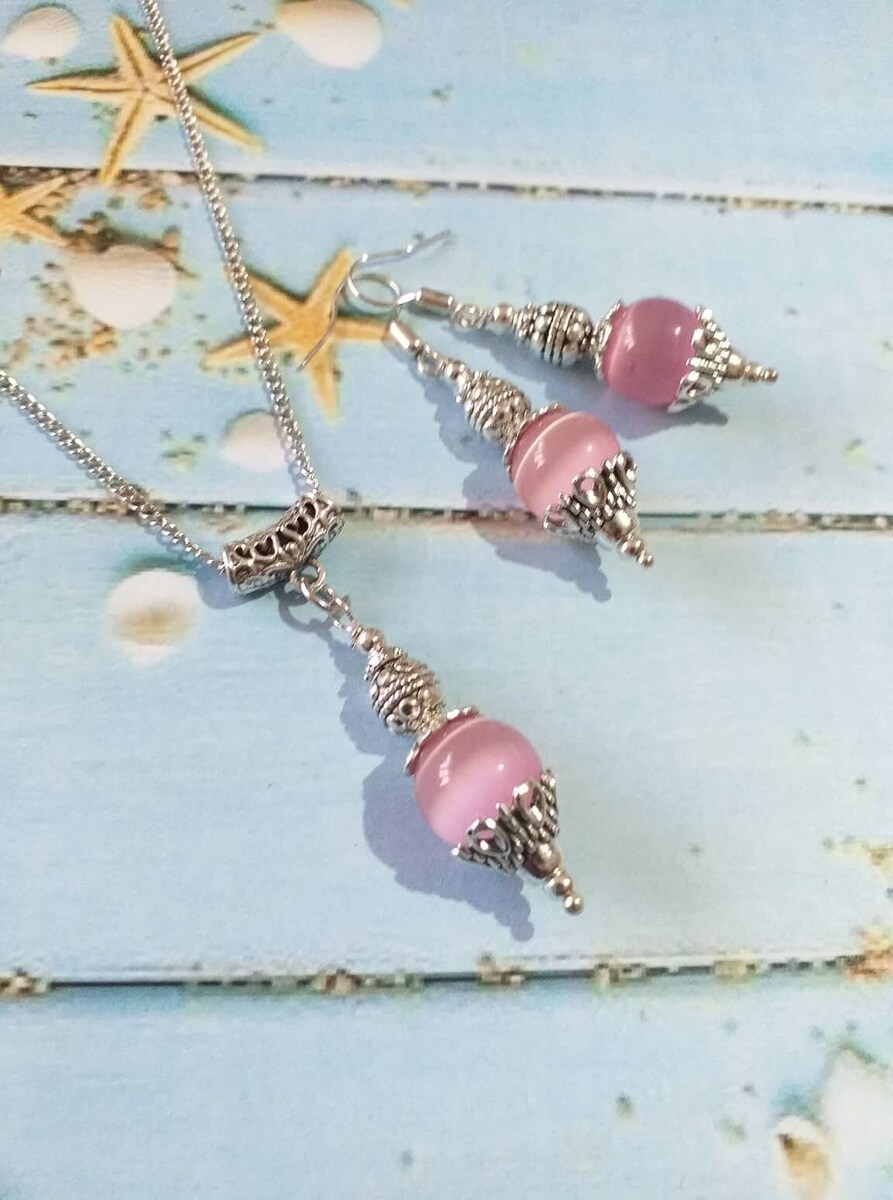 Beautiful Victorian Rose Pink gemstone Cat eye with filigree silver-tone ornaments jewelry set earrings and necklace. Cat eye earrings . Chrysoberyl Cat eye necklace. Chrysoberyl Cat eye jewelry set. Cat eye Dangle earrings . Boho jewelry set earrings and necklace . Bohemian jewelry set necklace and earrings . Rose pink Cat eye and silver-tone ornaments earrings and necklace jewelry set . Vintage style jewelry set . Antique style jewelry set.