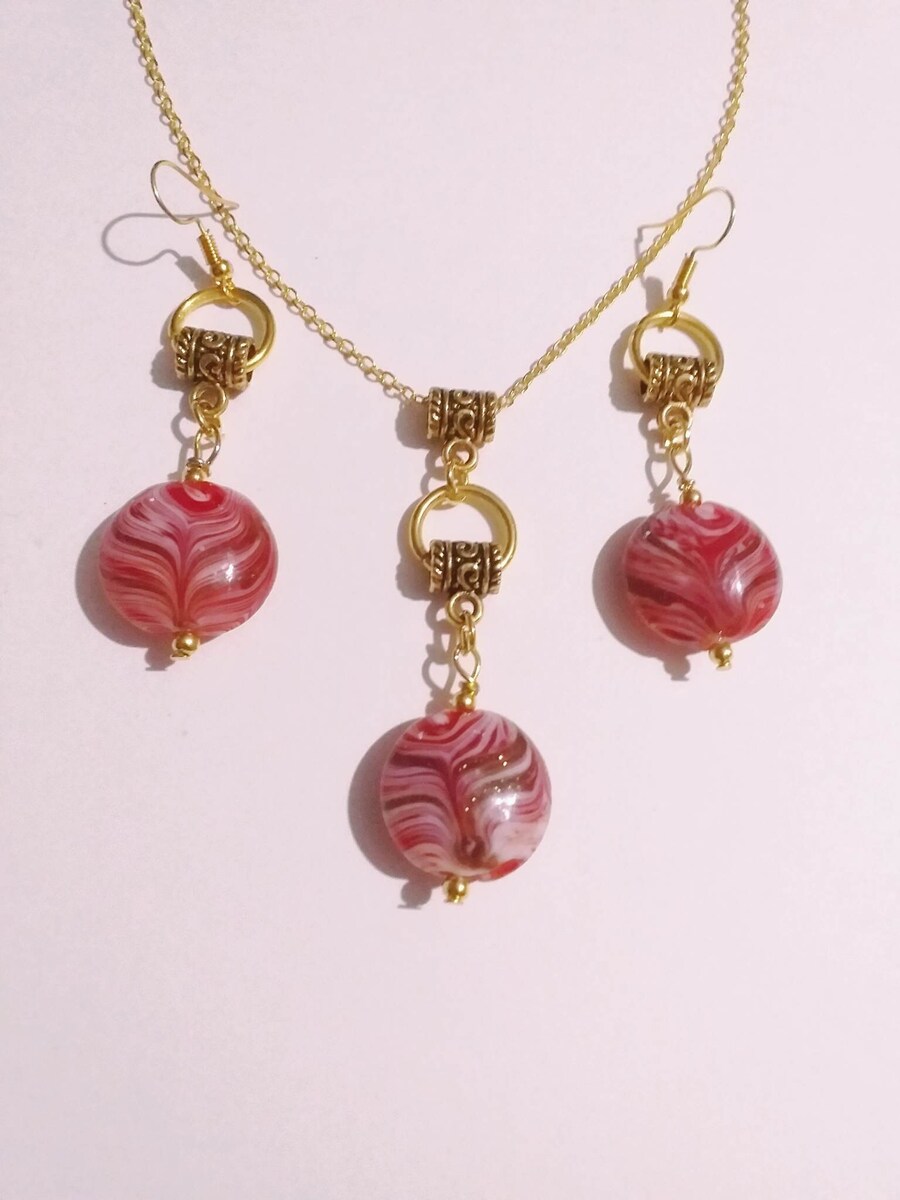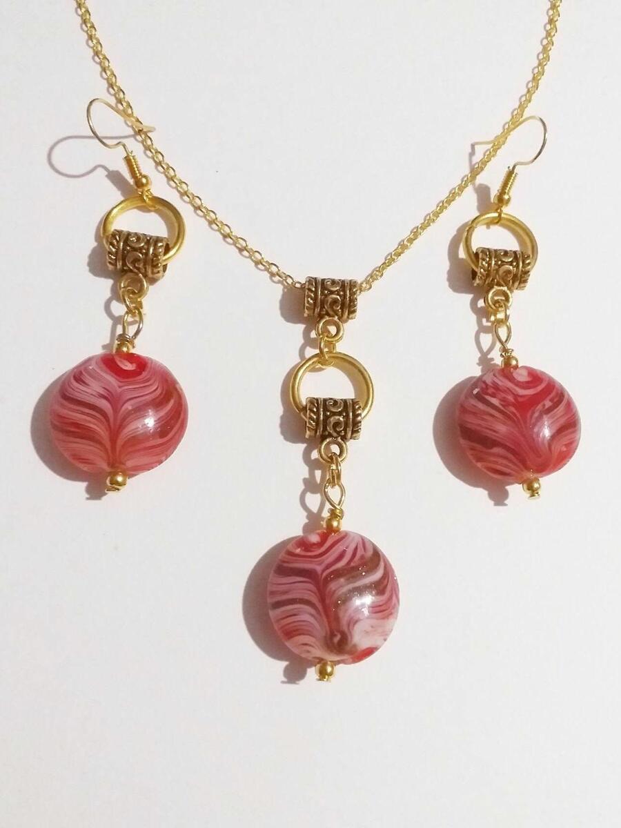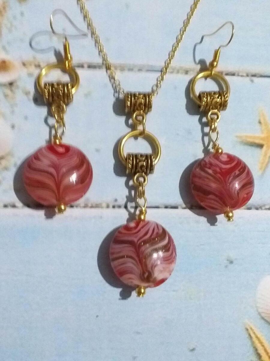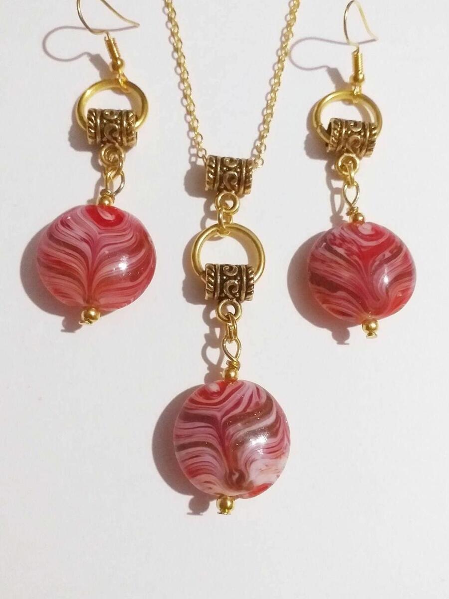 Murano red gold jewelry set Boho Murano handmade glass jewelry set earrings neck