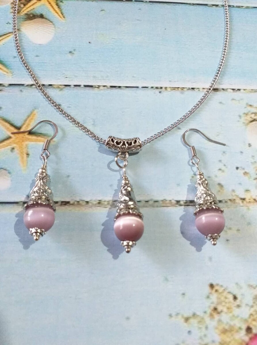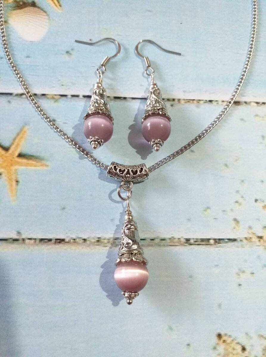 Beautiful Victorian Ashes Of Roses Pink gemstone Chrysoberyl Cat eye with silver-tone ornaments jewelry set earrings and necklace. Cat eye earrings . Chrysoberyl Cat eye necklace. Chrysoberyl Cat eye jewelry set. Cat eye Dangle earrings . Boho jewelry set earrings and necklace . Bohemian jewelry set necklace and earrings . Ashes Of Roses pink Cat eye and silver-tone ornaments earrings and necklace jewelry set . Vintage style jewelry set . Antique style jewelry set.