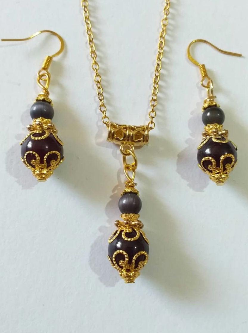 Beautiful Victorian Graphite tone gemstone Cat eye with filigree gold-tone ornaments jewelry set earrings and necklace. Cat eye earrings . Chrysoberyl Cat eye necklace. Chrysoberyl Cat eye jewelry set. Cat eye Dangle earrings . Boho jewelry set earrings and necklace . Bohemian jewelry set necklace and earrings . Cat eye and gold-tone ornaments earrings and necklace jewelry set . Vintage style jewelry set . Antique style jewelry set.
