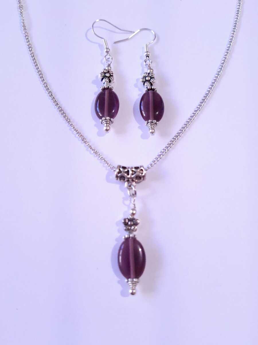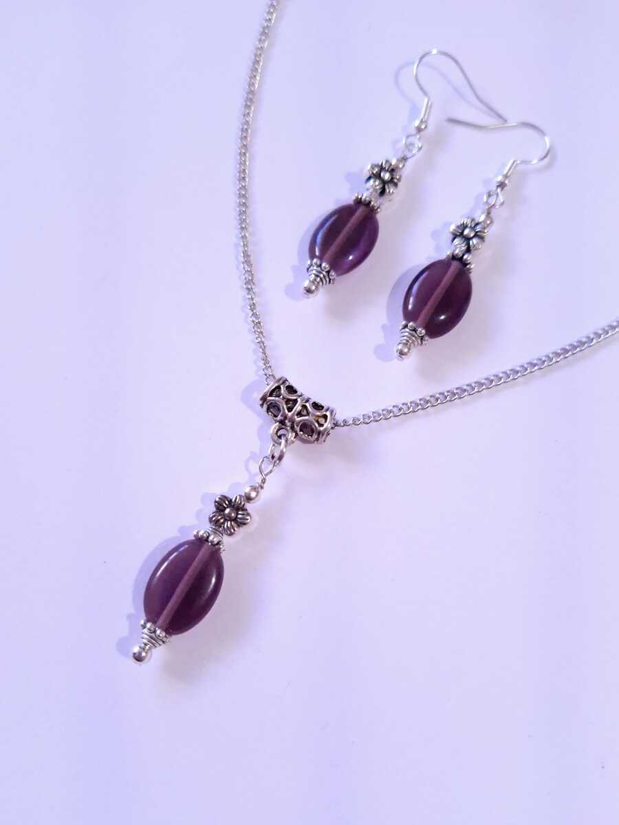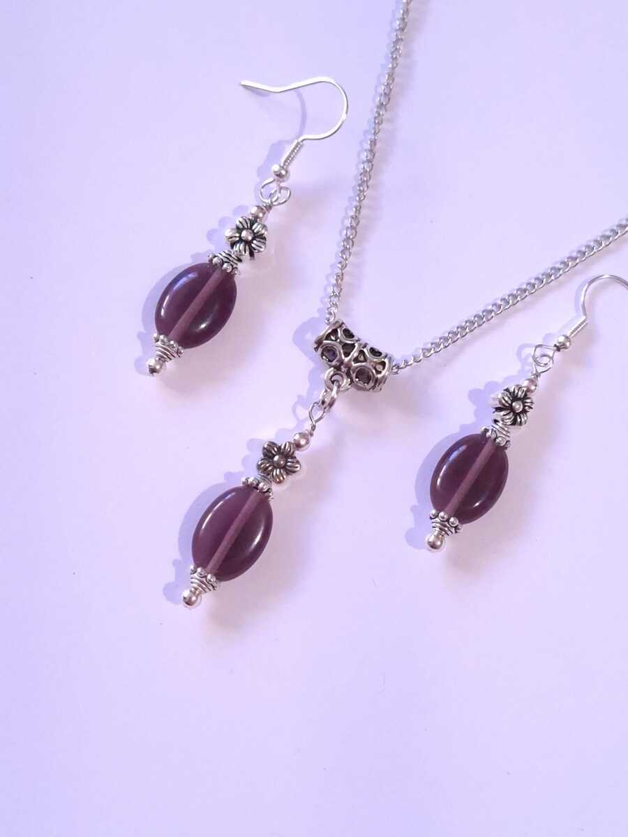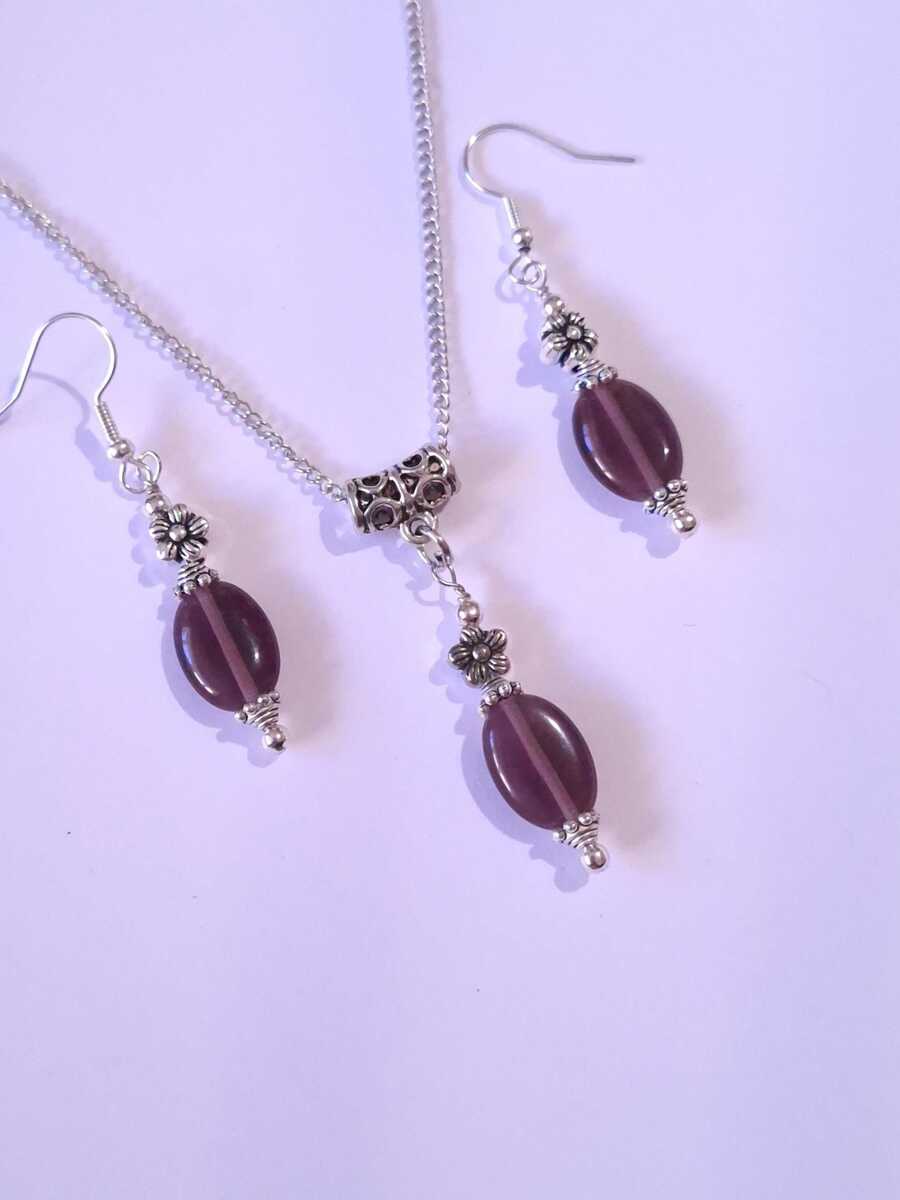 Purple Chrysoberyl Cat eye jewelry set Victorian silver set necklace earrings Boho jewelry set flower Burgundy jewelry set Purple jewelry