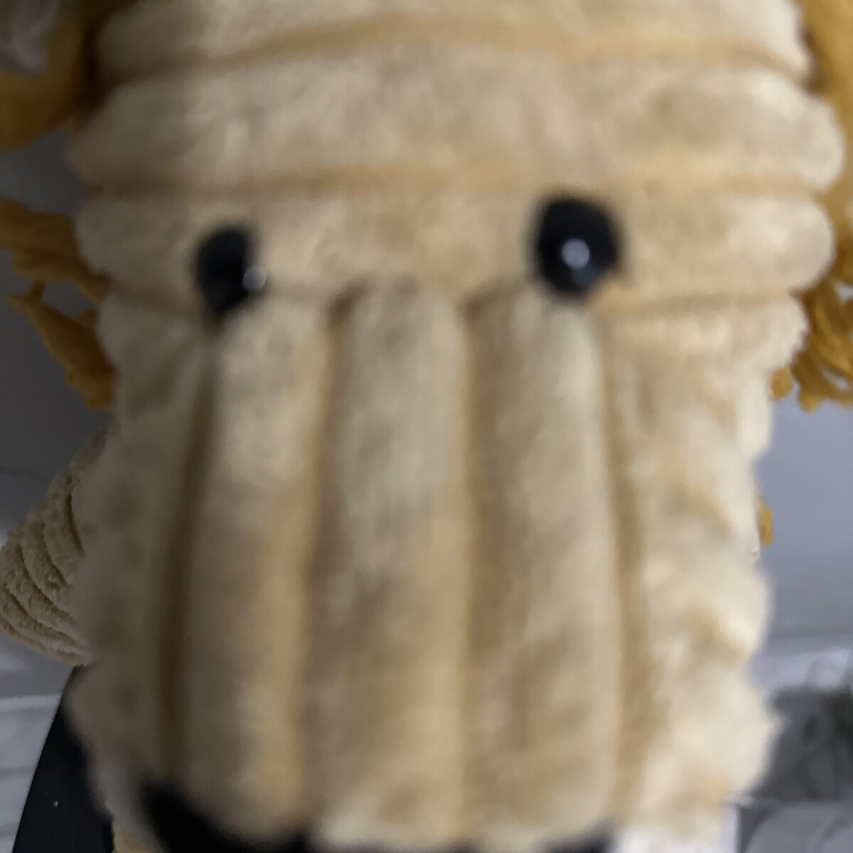 Lovely little bashful Cordroy Lion tan in color freshly washed and bags are packed and ready to go make a new friend.