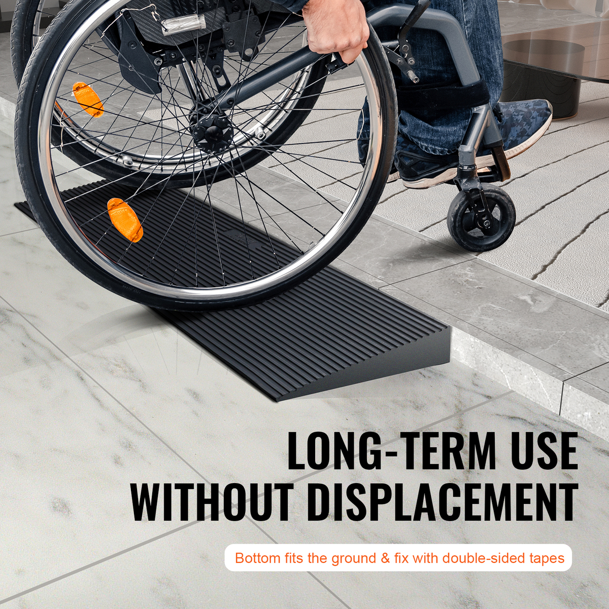 33069 lbs Loading Capacity: VEVOR solid ramp provides you with a smooth and stable slope transition, with a super strong bearing capacity of up to 15 tons, which can be used for long-term transportation or climbing of wheelchairs, sweeping robots, pushcarts, baby carriages, etc. Compression resistance is not easy to deform.