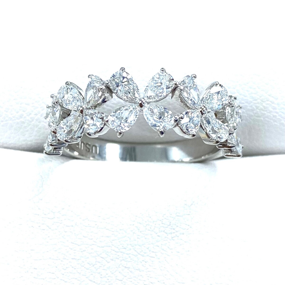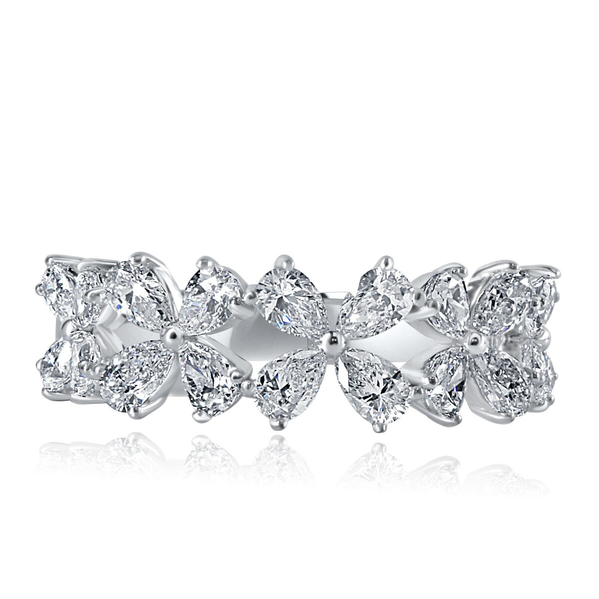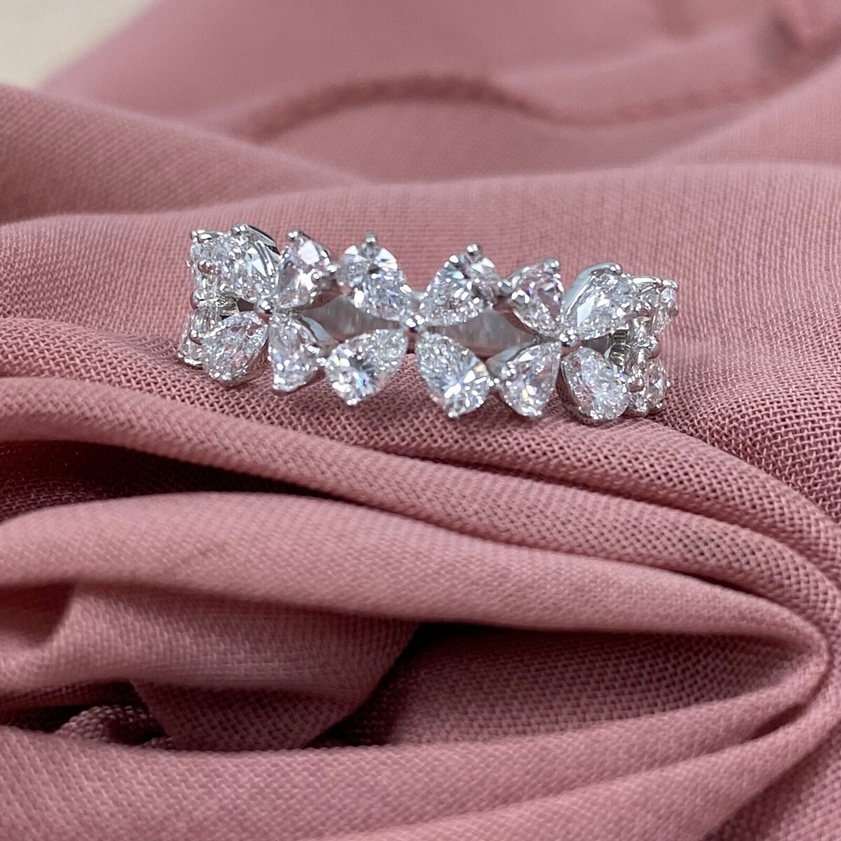 This elegant wedding band is a celebration of timeless beauty and modern craftsmanship. Featuring pear brilliant cut lab-grown diamonds arranged in a delicate 4-petal floral design, this band creates a unique 5 X pattern that symbolizes unity and everlasting love.