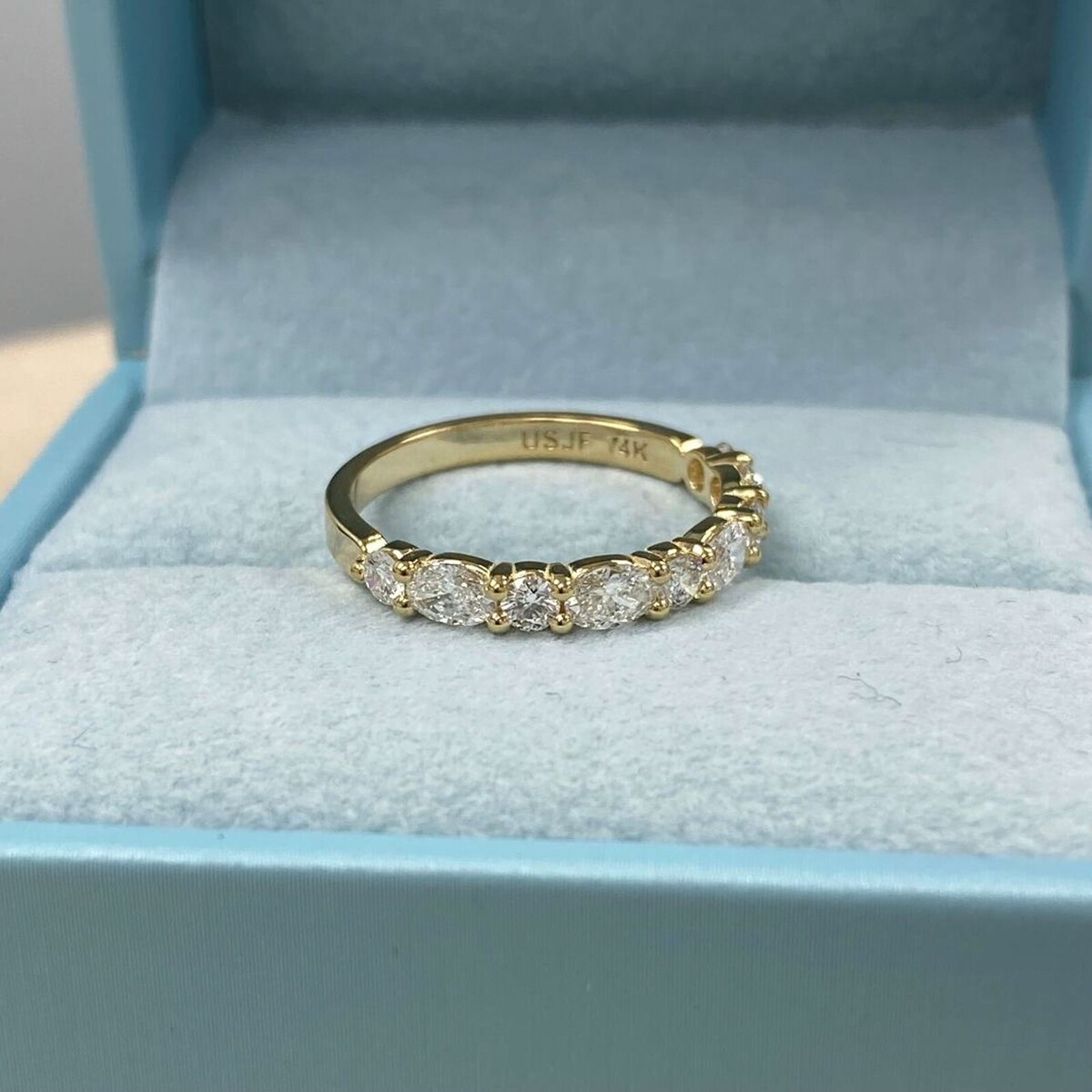 Experience timeless elegance with our 1.00 carat wedding band, featuring a captivating design of alternating round and oval-cut lab-grown diamonds set in luxurious 14k gold. Each diamond shines with brilliance, adding a touch of sophistication to your special day.