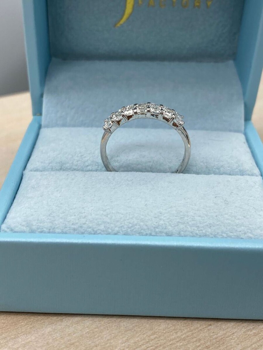 This prong setting diamond wedding band is a dazzling expression of love and commitment. Crafted in stunning 14k solid gold, it features seven radiant brilliant cut lab-grown diamonds, each securely held in a classic prong setting. The total carat weight is 1.00 carats. Whether as an anniversary or wedding band, its timeless beauty is guaranteed to captivate attention wherever you go!!!