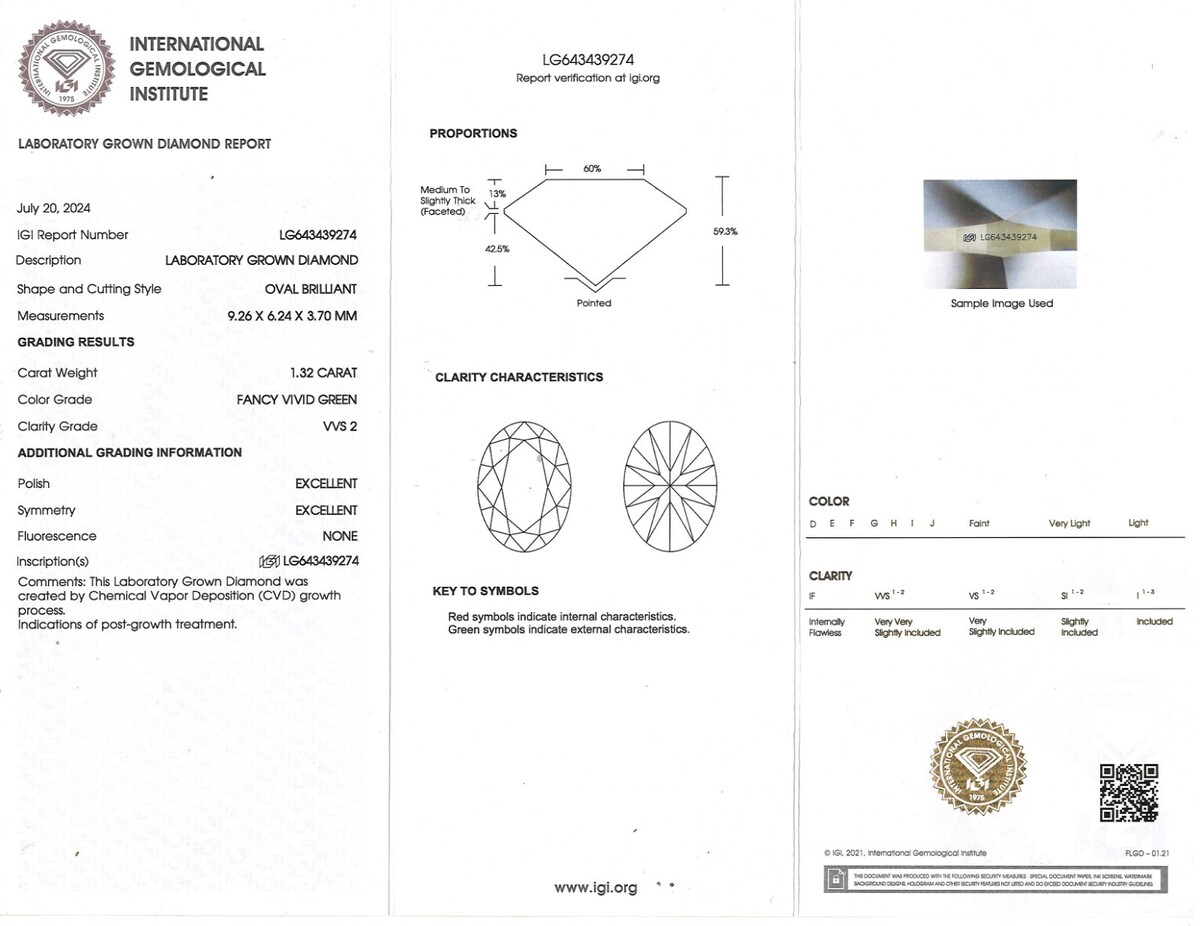 Diamant de laboratoire fantaisie vert vif de 1,32 carat