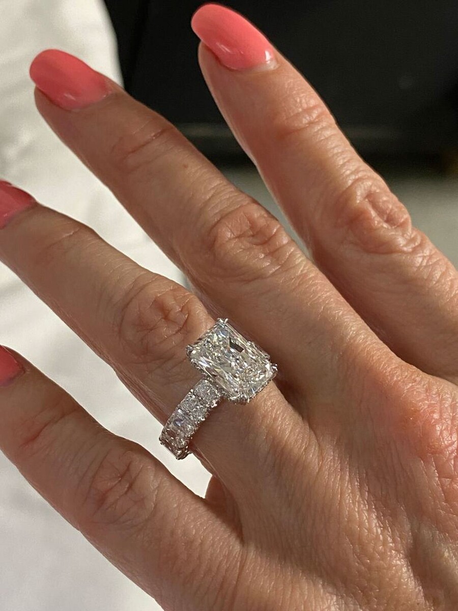 Igi 4.15 CT Radiant Brillant Coupe Labo Grown Diamant 7.52 Carats Bague 14k or