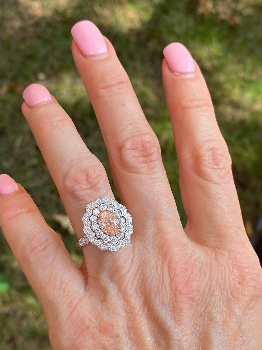 Coupe Ovale Igi 1.03 CT Vif Rose Labo Grown Anneau Fiancailles Diamant 14k 2.21