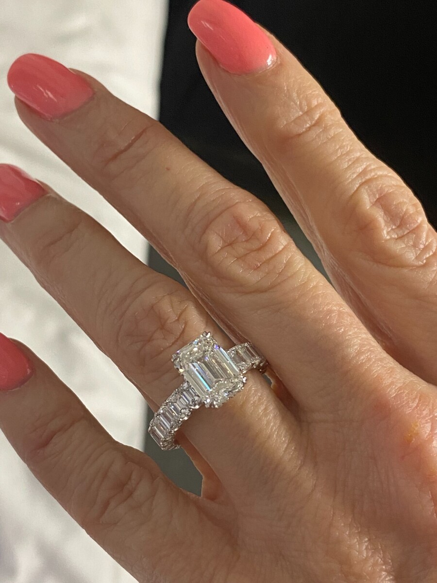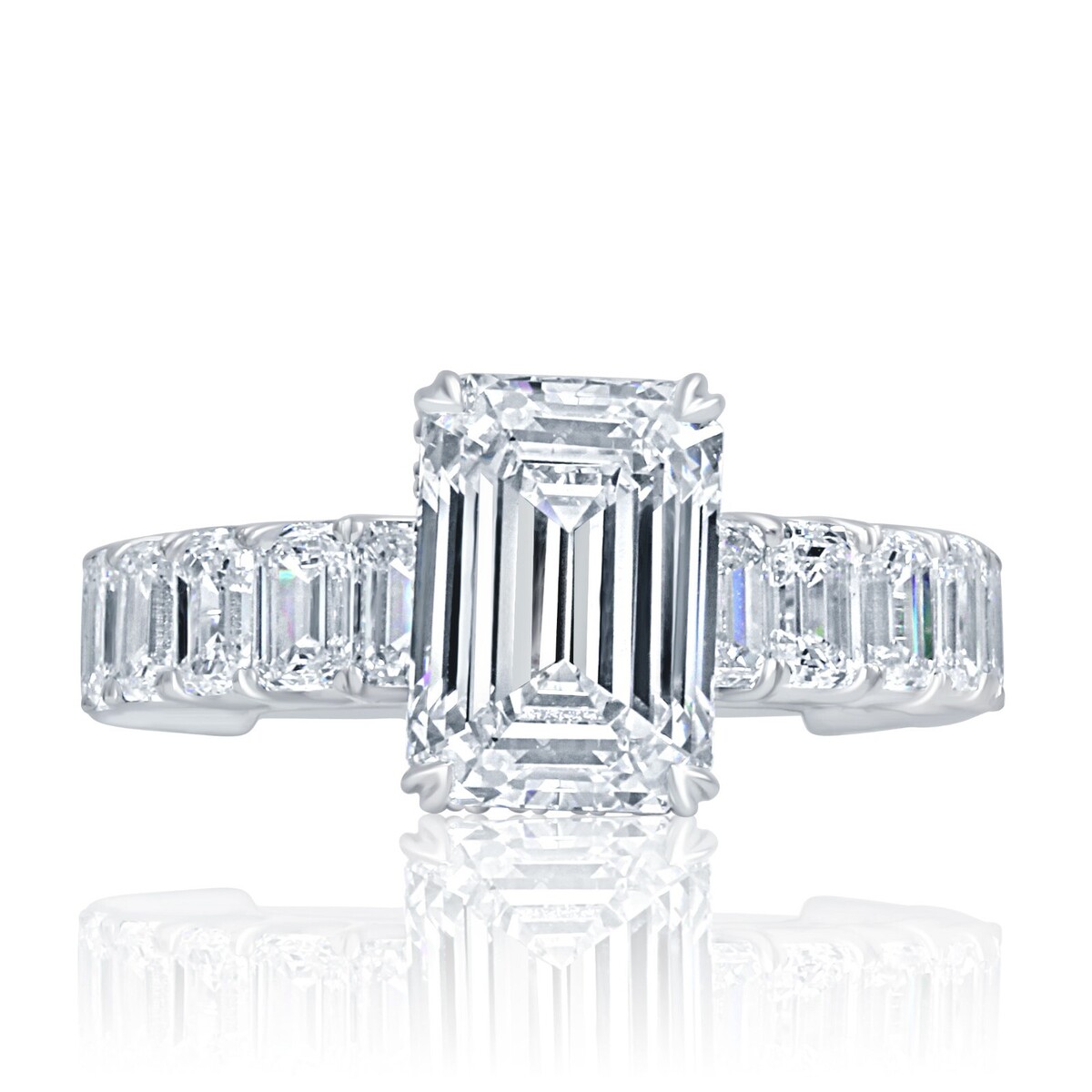 4 Carats E-VVS2 Emeraude Coupe Igi Labo Grown Anneau Fiancailles Diamant 14k Or