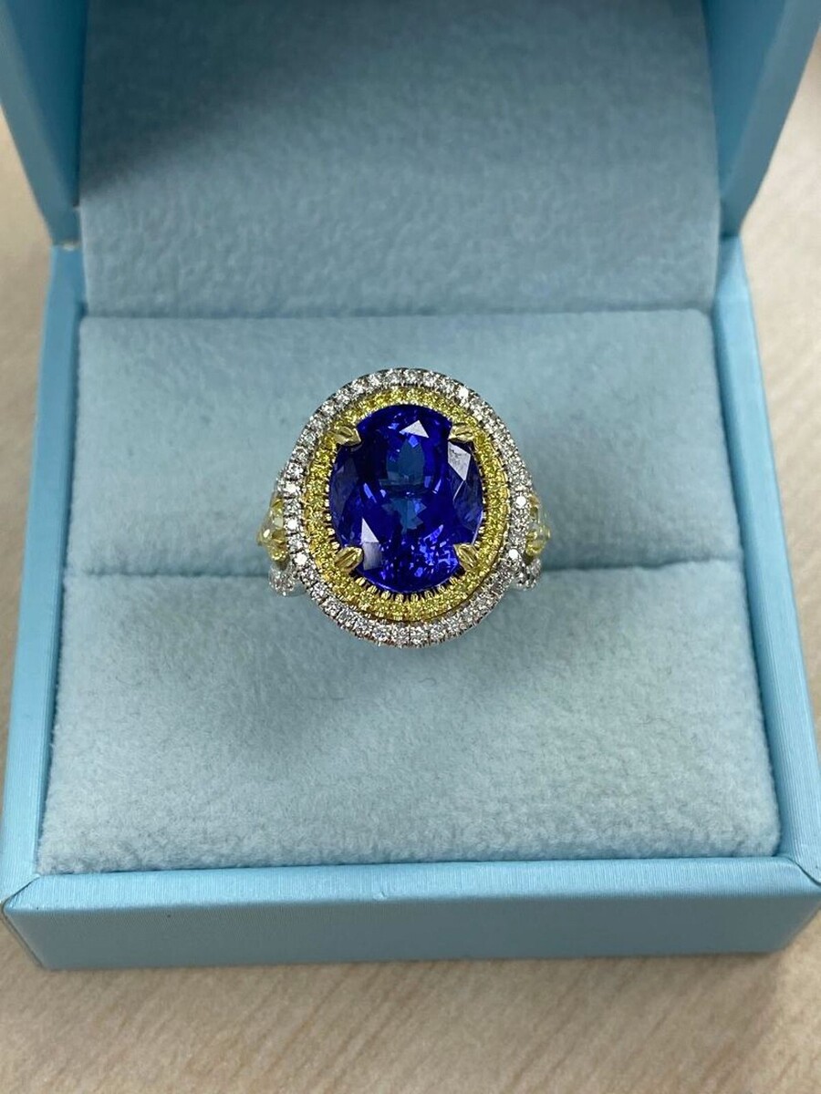7.71 anillo de diamantes de tanzanita ovalada certificada con tanzanita certificada con tanzanita. Hanzanita Su color violeta azul único, Tanzanite es una piedra preciosa rara, muy apreciada por su belleza y es una piedra de natal diamantes. El peso total de quilates es de 9.59 quilates