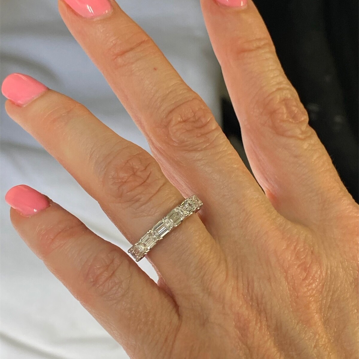 Corte Esmeralda Laboratorio Crecido Diamante Eternidad Completo Banda 14k Oro
