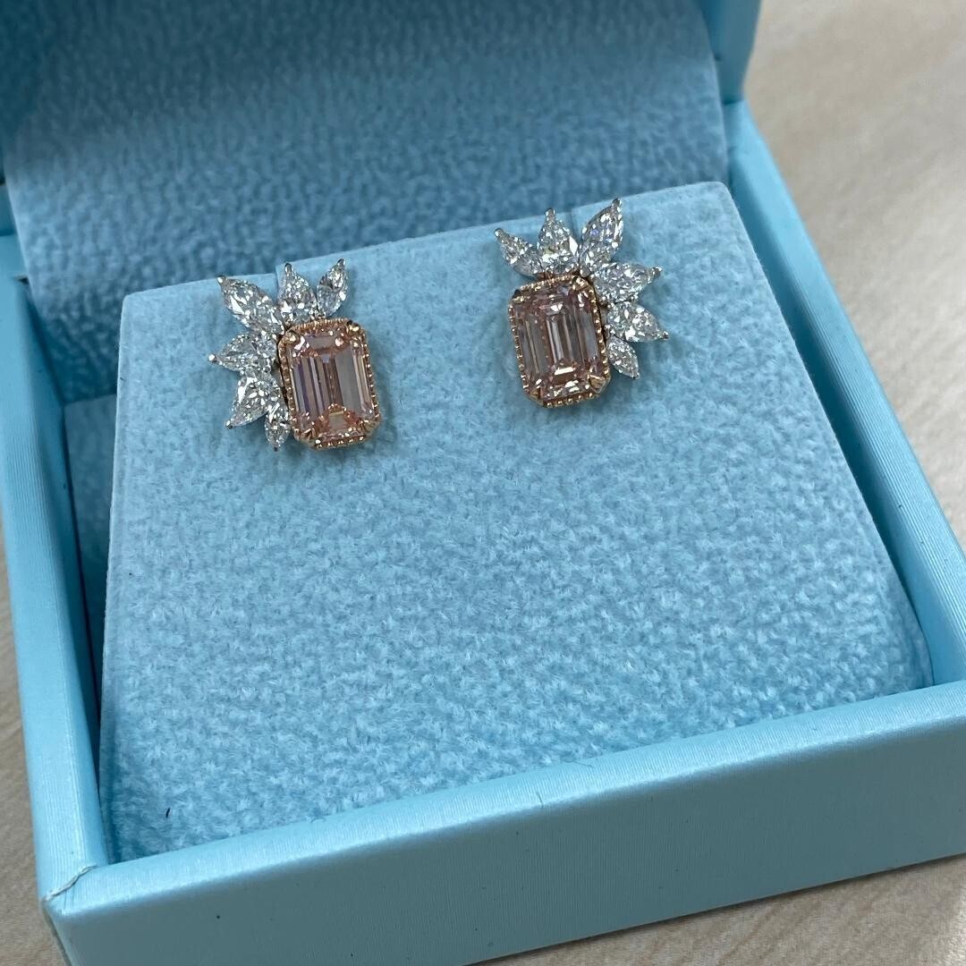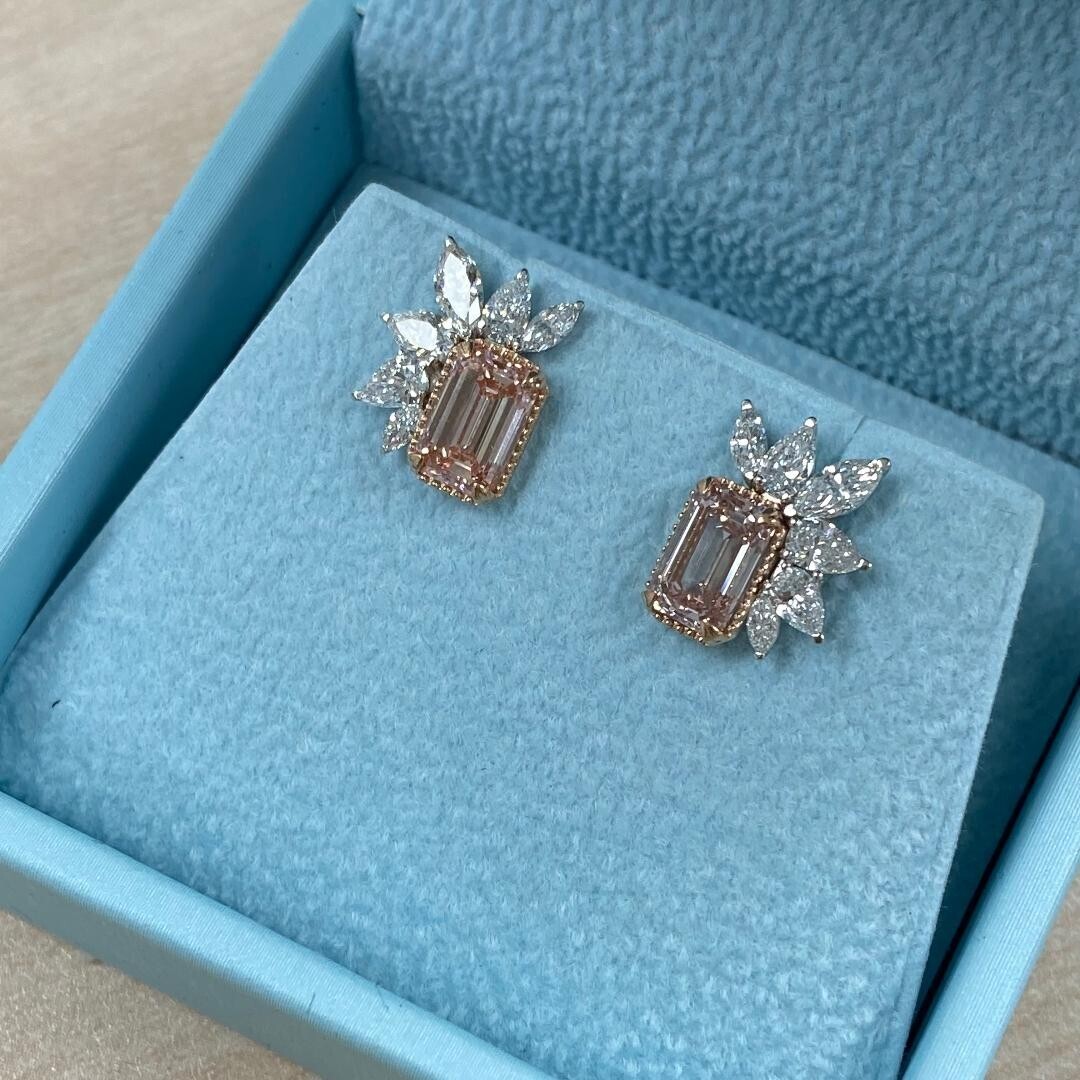 IGI 3.20 TCW Emerald Lab cultivado Fancy intenso Pink Diamond Cluster Pendientes 14K