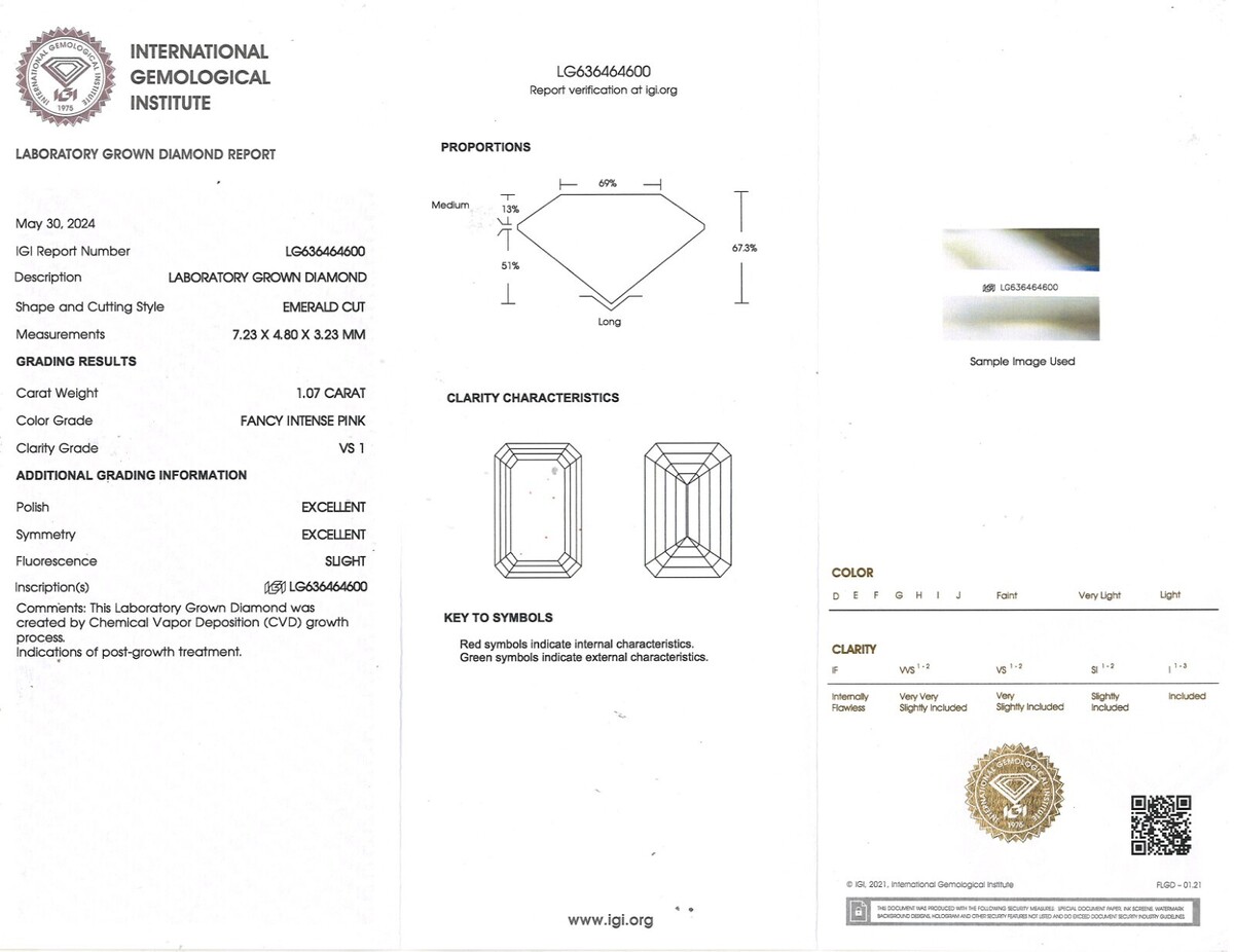 Igi 3.20 TCW Esmeralda Laboratorio Crecido Elegante Intenso Rosa Diamante 14k