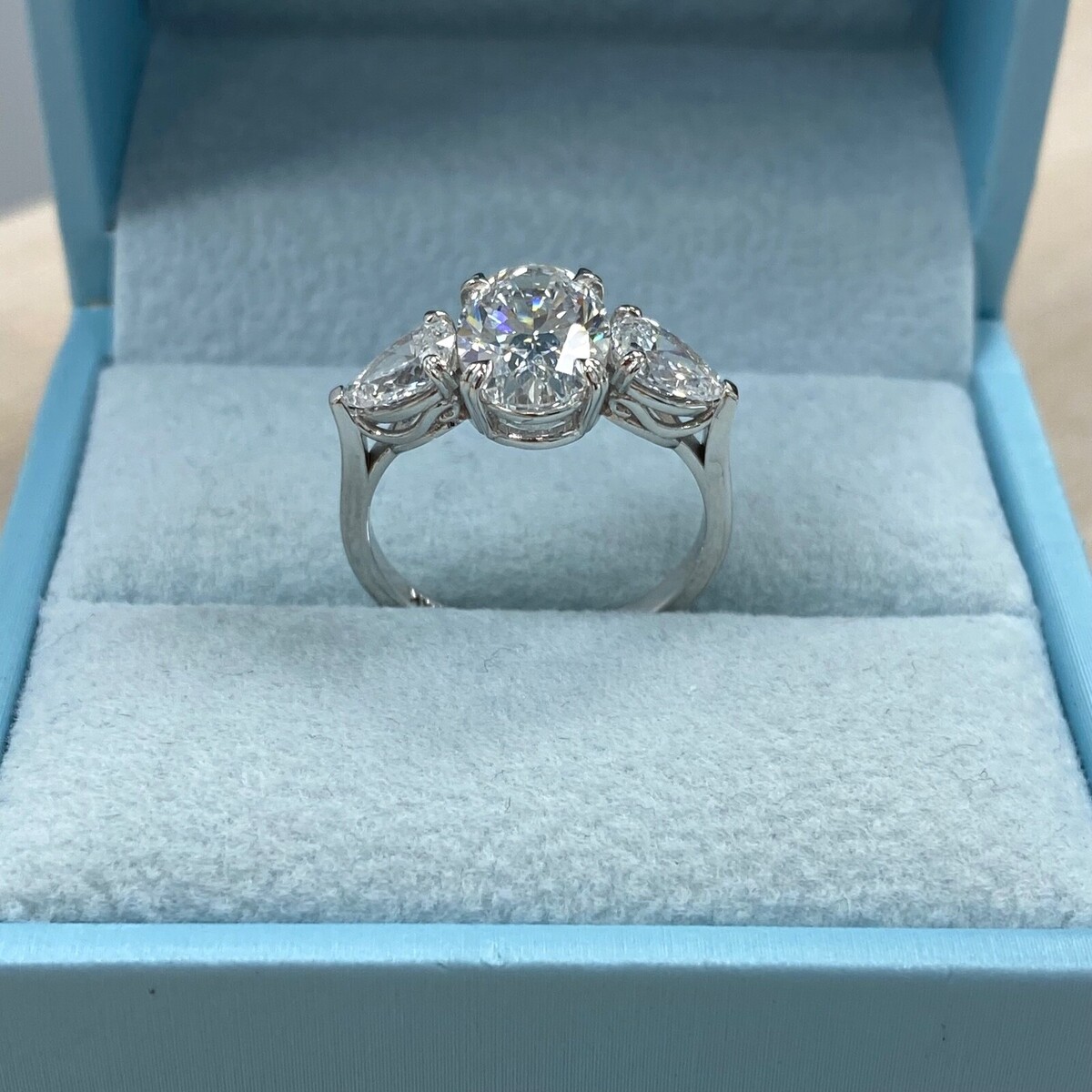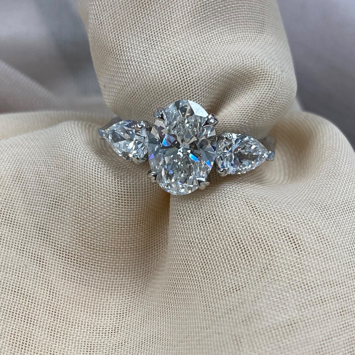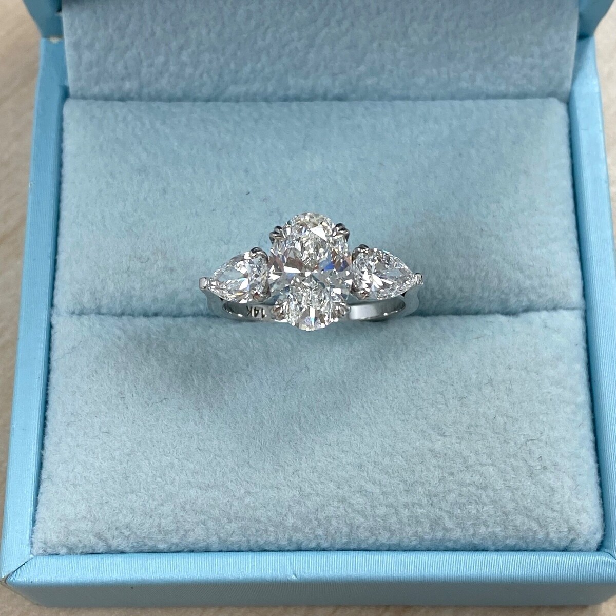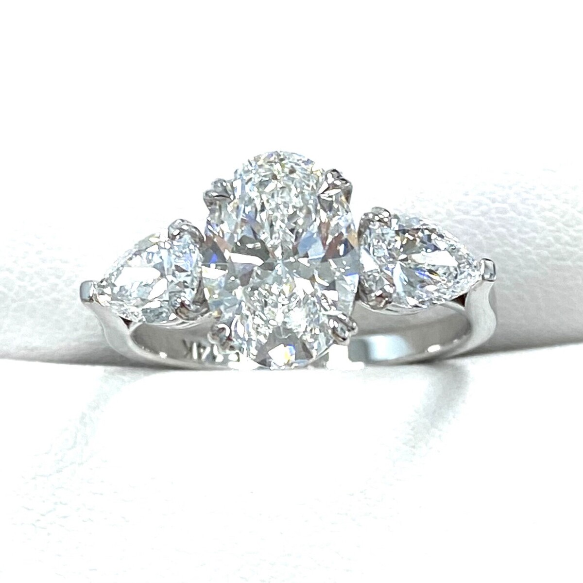 Certificado Igi 2.14CT Laboratorio Crecido Ovalado 3 Anillo de Diamantes 14k