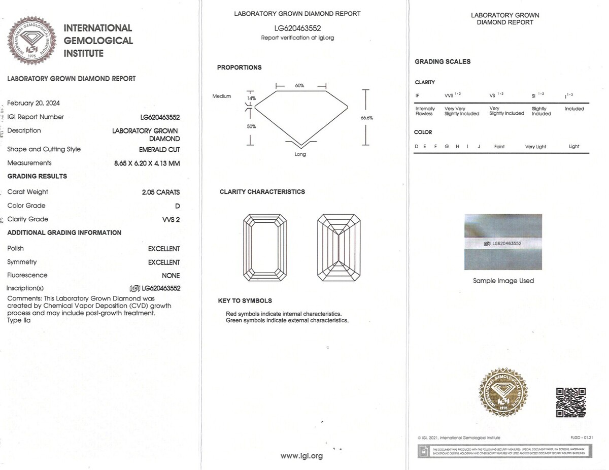 3 Pietra Igi 2.05Ct D-VVS2 Smeraldo Taglio and 50 similar items