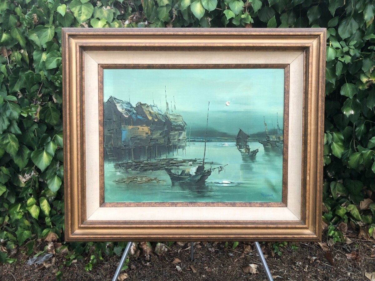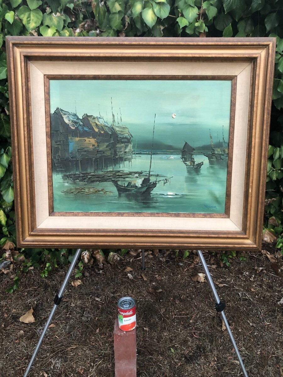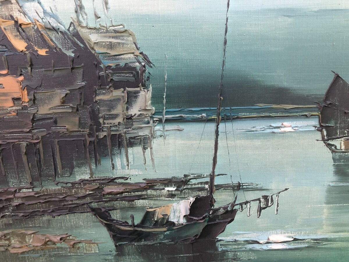 SONG Original 1960s HUGE ABSTRACT HONG KONG HARBOR SEASCAPE IMPRESSIONISM MCM