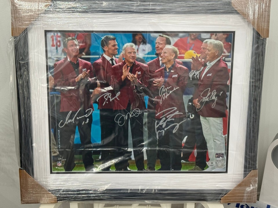 Own a rare, investment-grade collectible with this LIMITED EDITION 7 NFL Quarterbacks Autographed Photo, individually numbered 54/100 and authenticated by Fanatics. This striking 16x20 framed display features signatures from seven top NFL quarterbacks, making it a centerpiece for any football fan, collector, or memorabilia investor. Professionally framed and ready to display, this limited edition run of only 100 pieces ensures long-term scarcity and strong collector demand.
