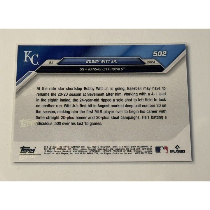 Bobby Witt Jr. 1st W/ 3 20/20 Seasons MLB Kansas City Royals 2024 Topps Now #502