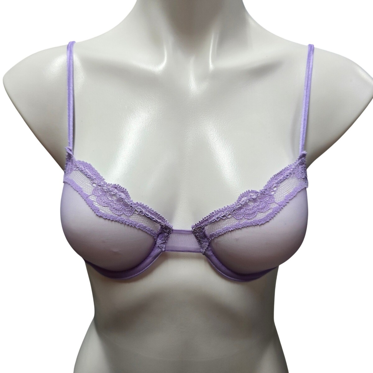 Sheer Mesh Lace Trim Bra Lavender 34A and 50 similar items