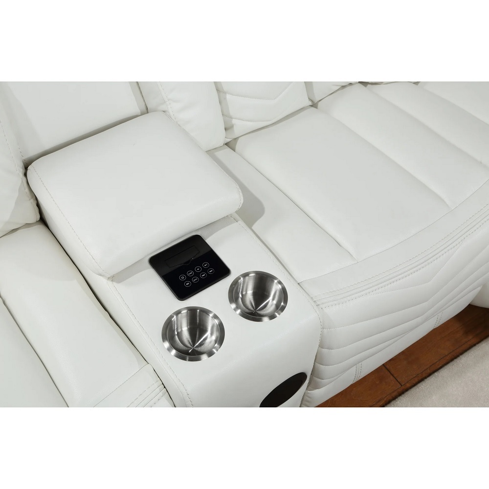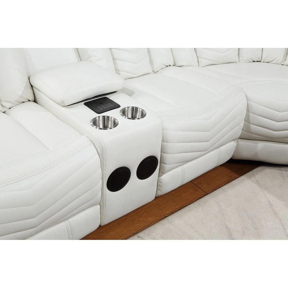 Vichy White Air Leather Reclining Sectional with LED & Bluetooth