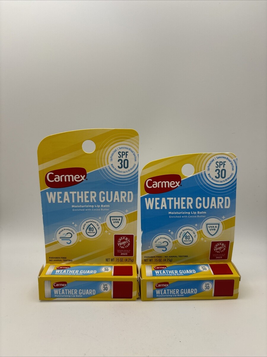 Lot of 2 - Carmex Weather Guard Moisturizing Lip Balm SPF 30