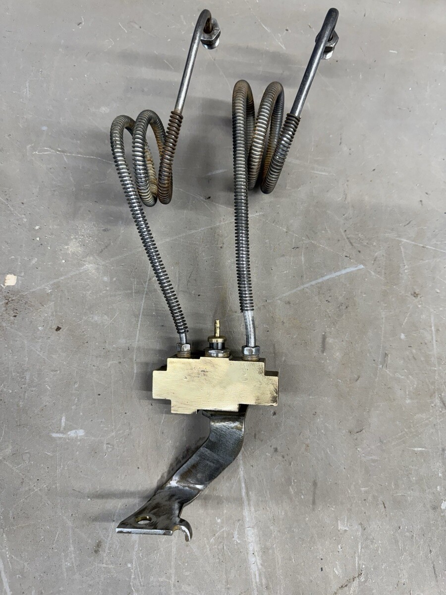 Genuine GM front brake proportioning valve with lines running from dual master cylinder.