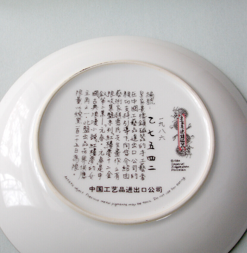 Yuan Chun Beauties of Red Mansion Collector Plate 1986 2nd in Limited Edt. 8.5"