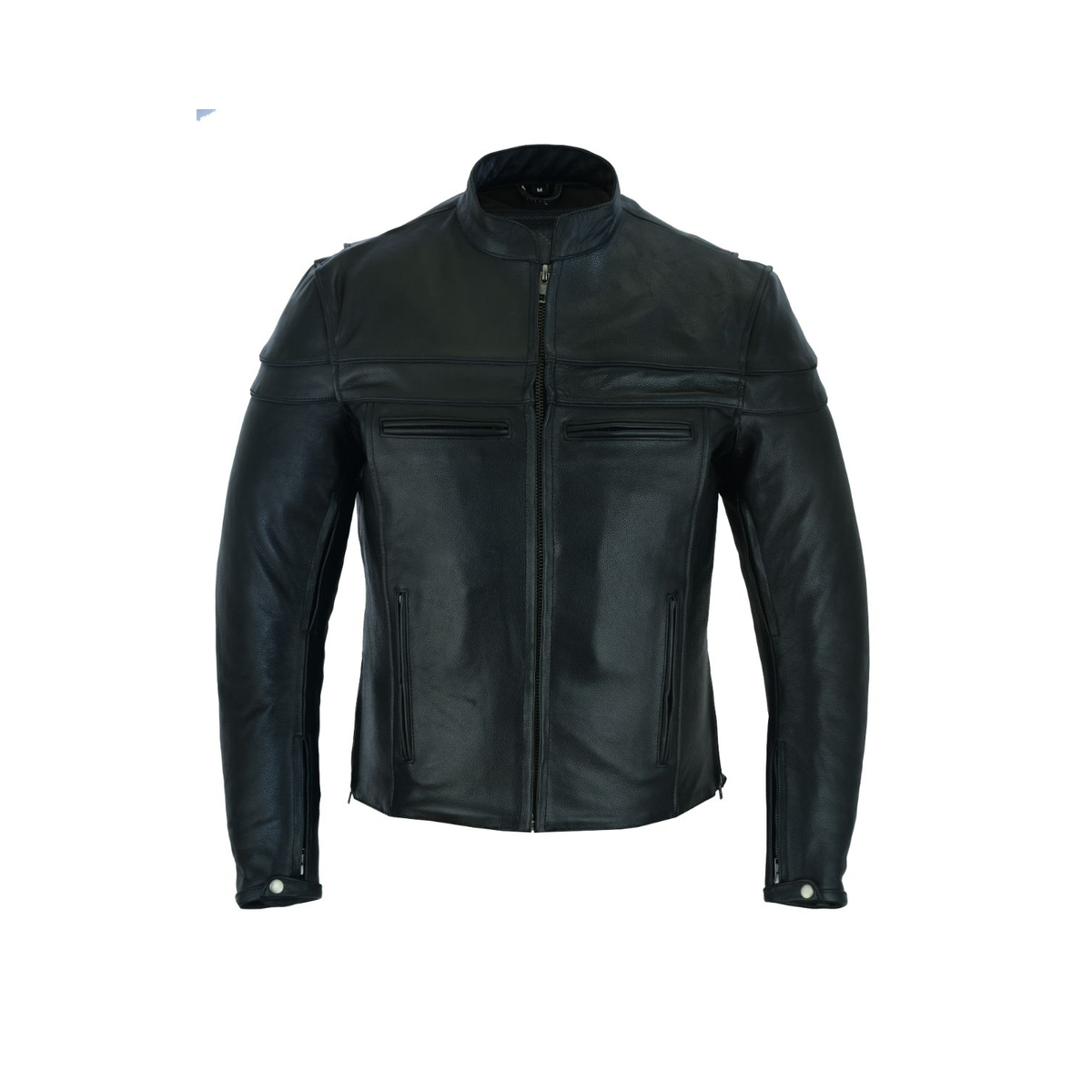 Mens VL531 Premium Leather Racer Commuter Motorcycle Jacket