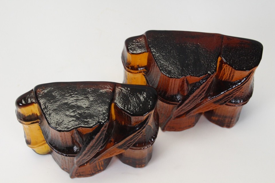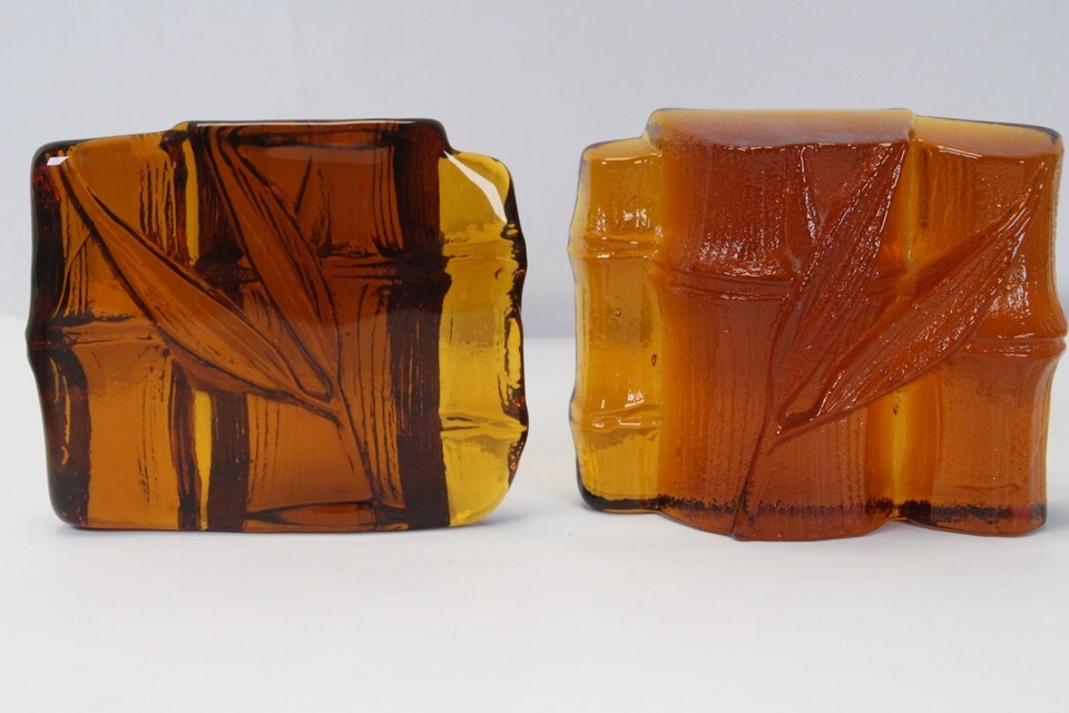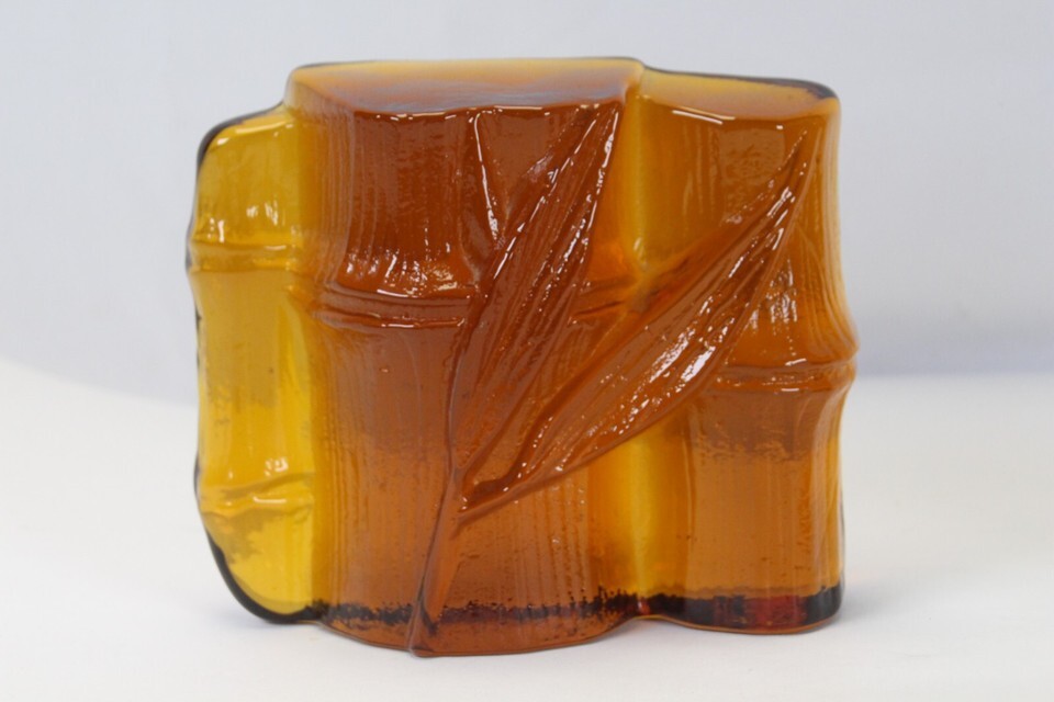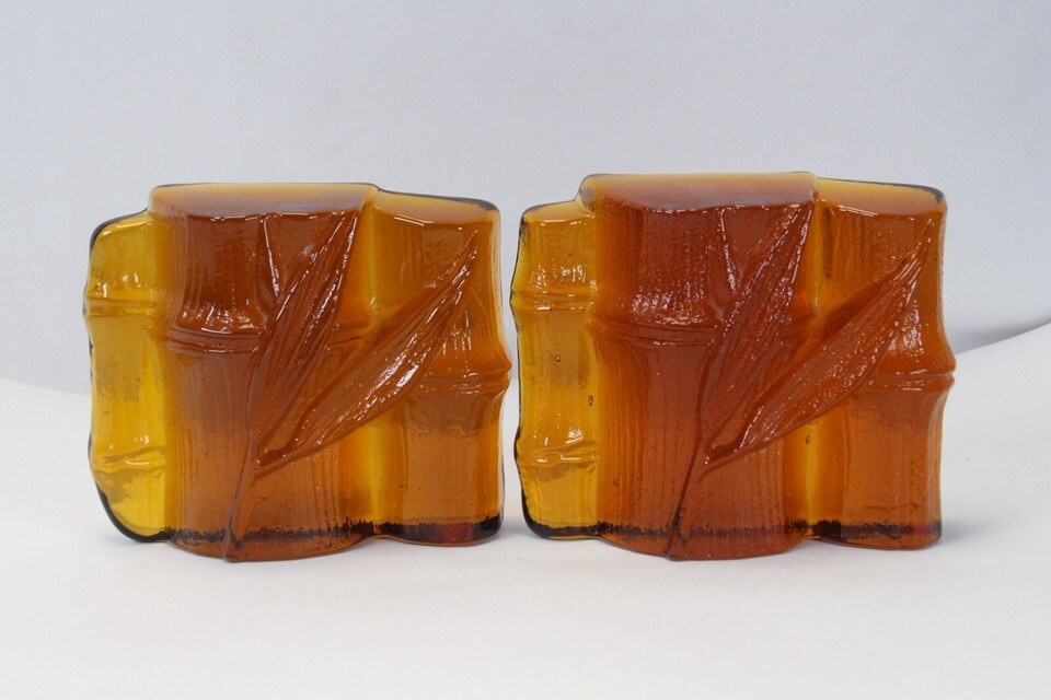 Blenko Amber Glass Bamboo Shaft Bookend Vintage MCM Midcentury 4.8" H x 5.8" L