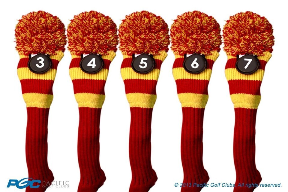 Hybrid golf club headcover 6 PC VINTAGE RED YELLOW 3 4 5 6 7 8 KNIT Head cover