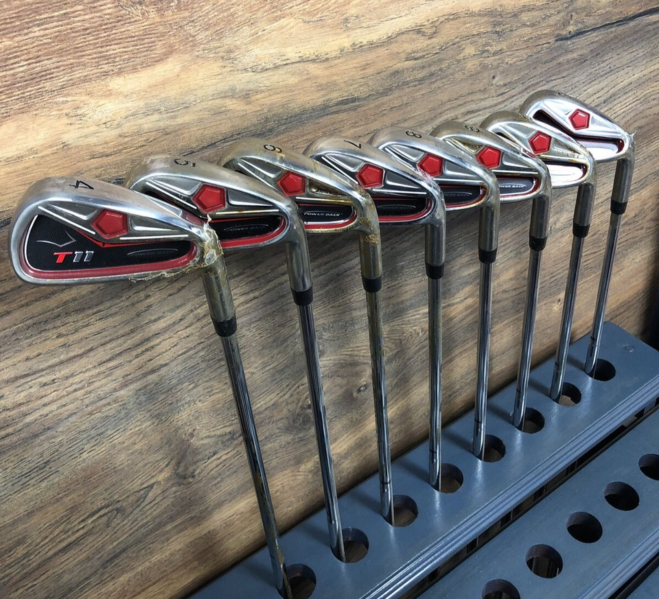 You will receive a complete custom iron set which will include the 4, 5, 6, 7, 8, 9, PW + SW. The Power Back T11 oversize irons are designed with a deeply undercut cavity and a recessed weight that moves the center of gravity farther behind the face for optimal launch angles with enhanced forgiveness. The Power Back T11 irons have a traditional look with all the enhancements of the latest technology. The irons will give golfers improved performance workability and forgiveness for ultimate confidence.