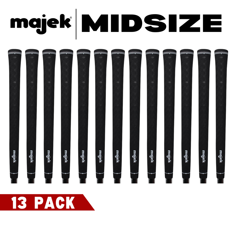 Majek Mens Tour Pro Black Midsize LOGO Golf Grips - 13 PACK