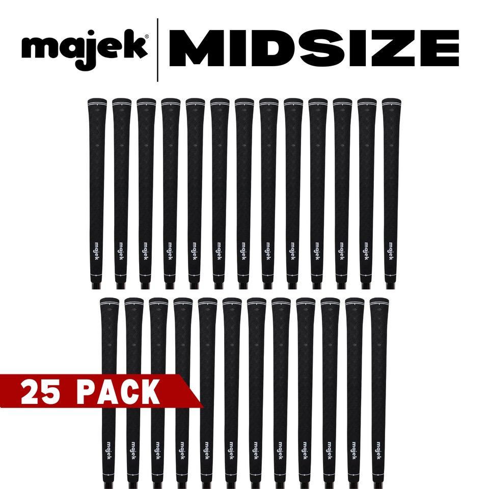 Majek Mens Tour Pro Black Midsize LOGO Golf Grips - 25 PACK