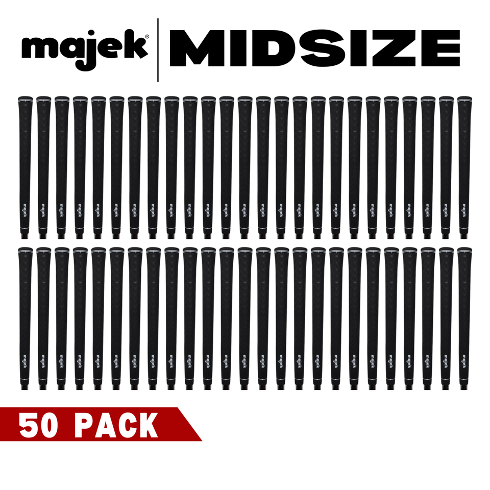 Majek Mens Tour Pro Black Midsize LOGO Golf Grips Bulk Pack - 50 PACK