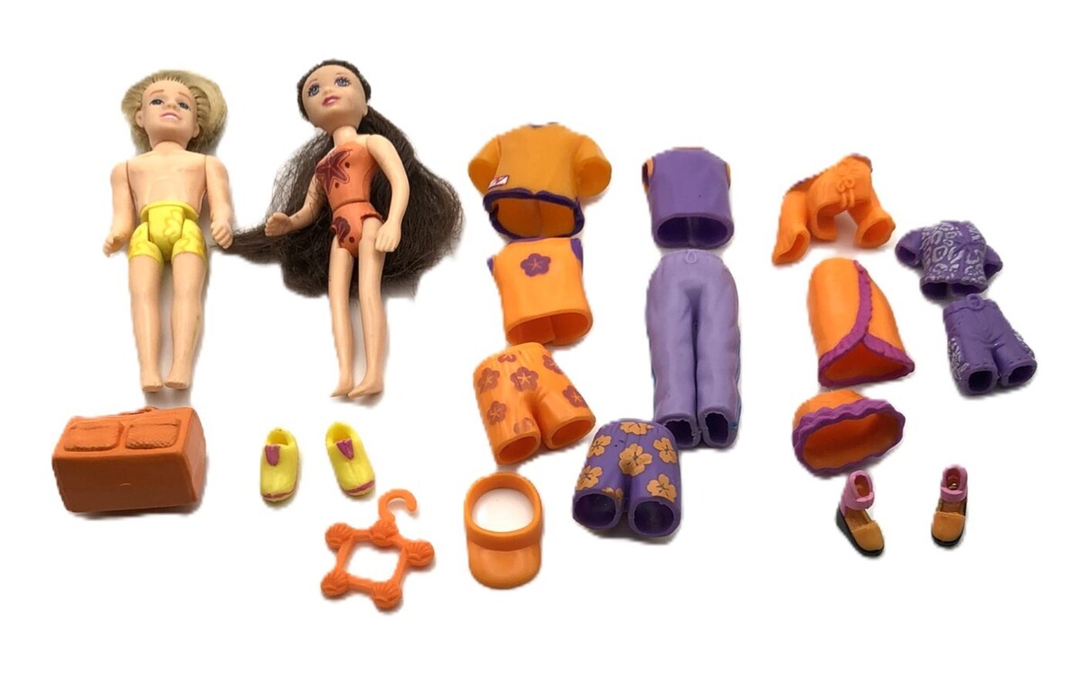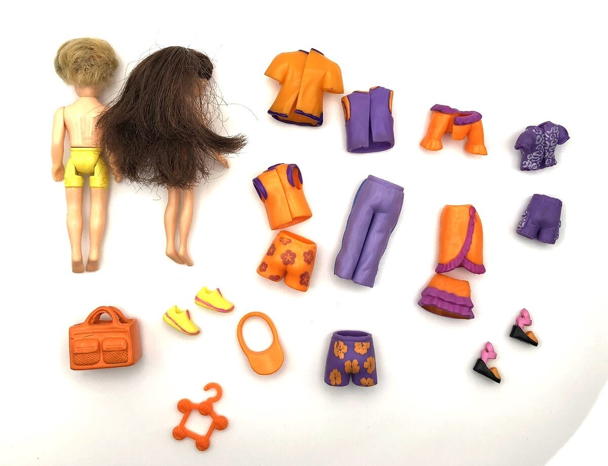 Dolls, Clothing, Shoes, and Accessories. The set comes with everything shown in the pictures. The clothing is made with a rubber material and the dolls are around 3 oe inches tall. The dolls and clothing are in good, pre-owned condition and do show a little wear from play. I do have more Polly Pocket dolls and mini dolls at my shop. Calculated shipping is applied to cart when you purchase multiple items at my shop.